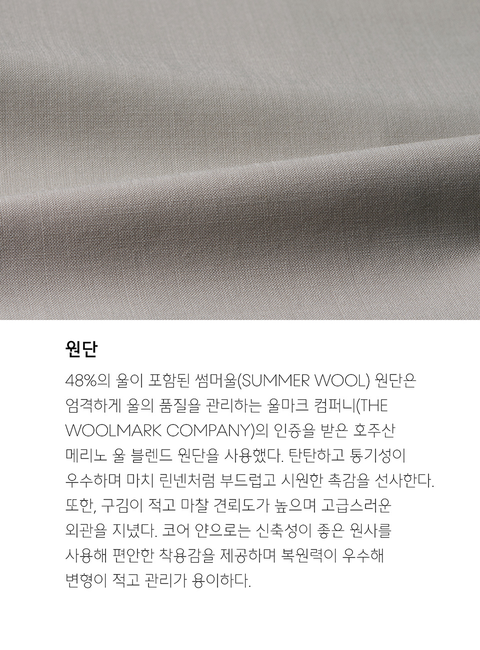우먼즈 썸머울 원 턱 와이드 히든 밴딩 슬랙스 [차콜 그레이]