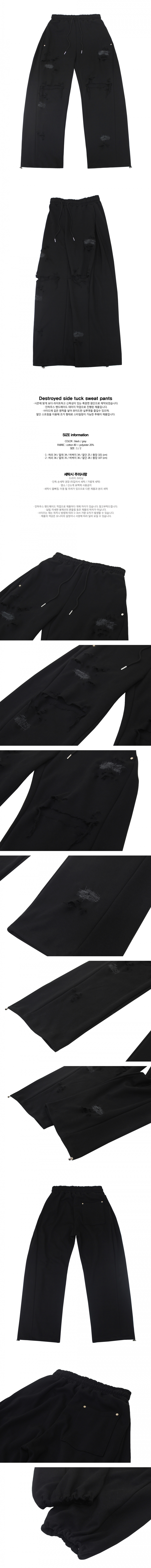 디스트로이드 사이드 턱 스웨트팬츠 (블랙)