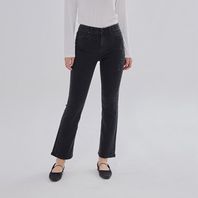 여성) 프리미엄 블랙 오비안밴드 자수&핫픽스 포인트 바이오스톤워싱 슬림 부츠컷_AN3DNE656-BK