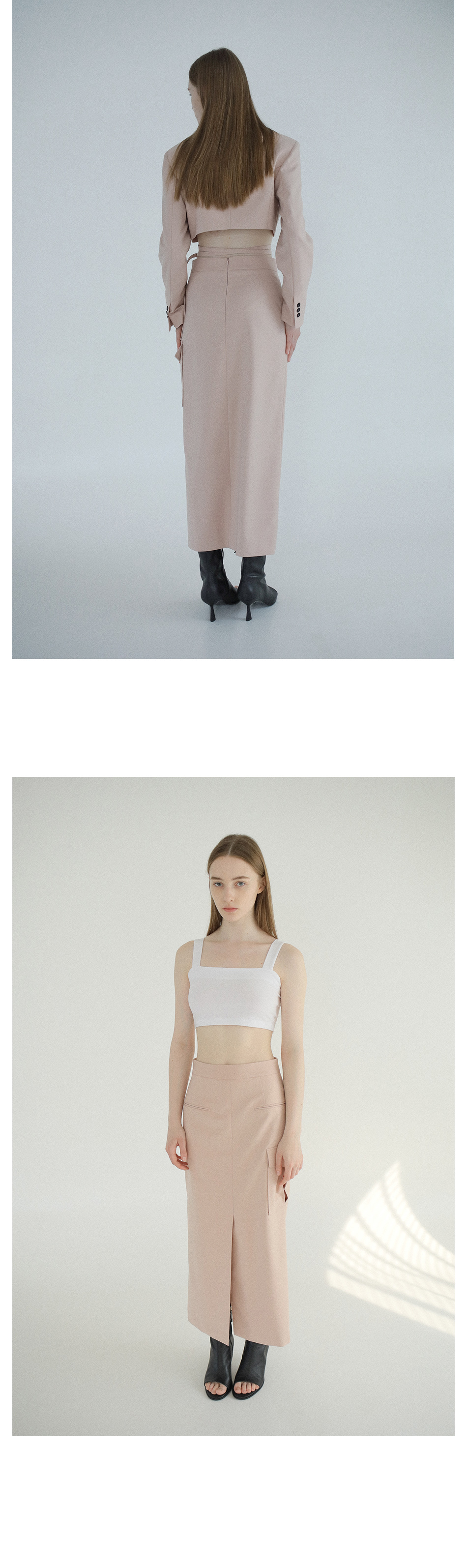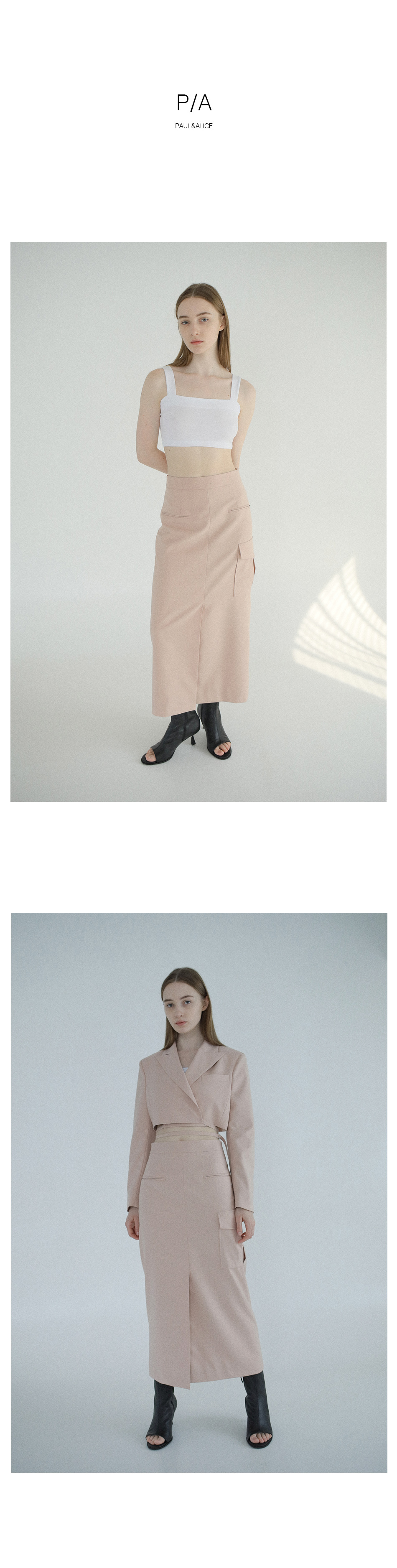 STRING CROP JACKET 와 셋업으로 착용 가능합니다.