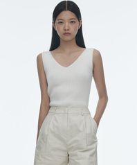 우먼즈 리브드 브이 넥 니트 슬리브리스 탑 [아이보리]