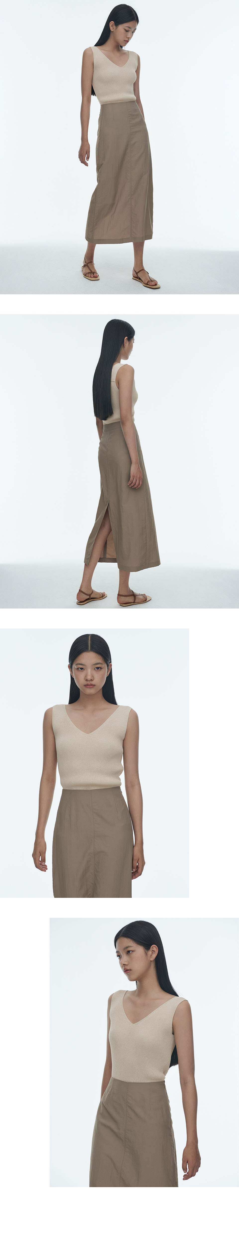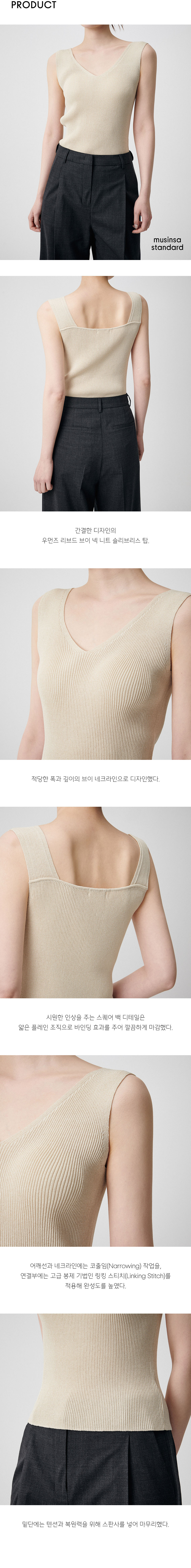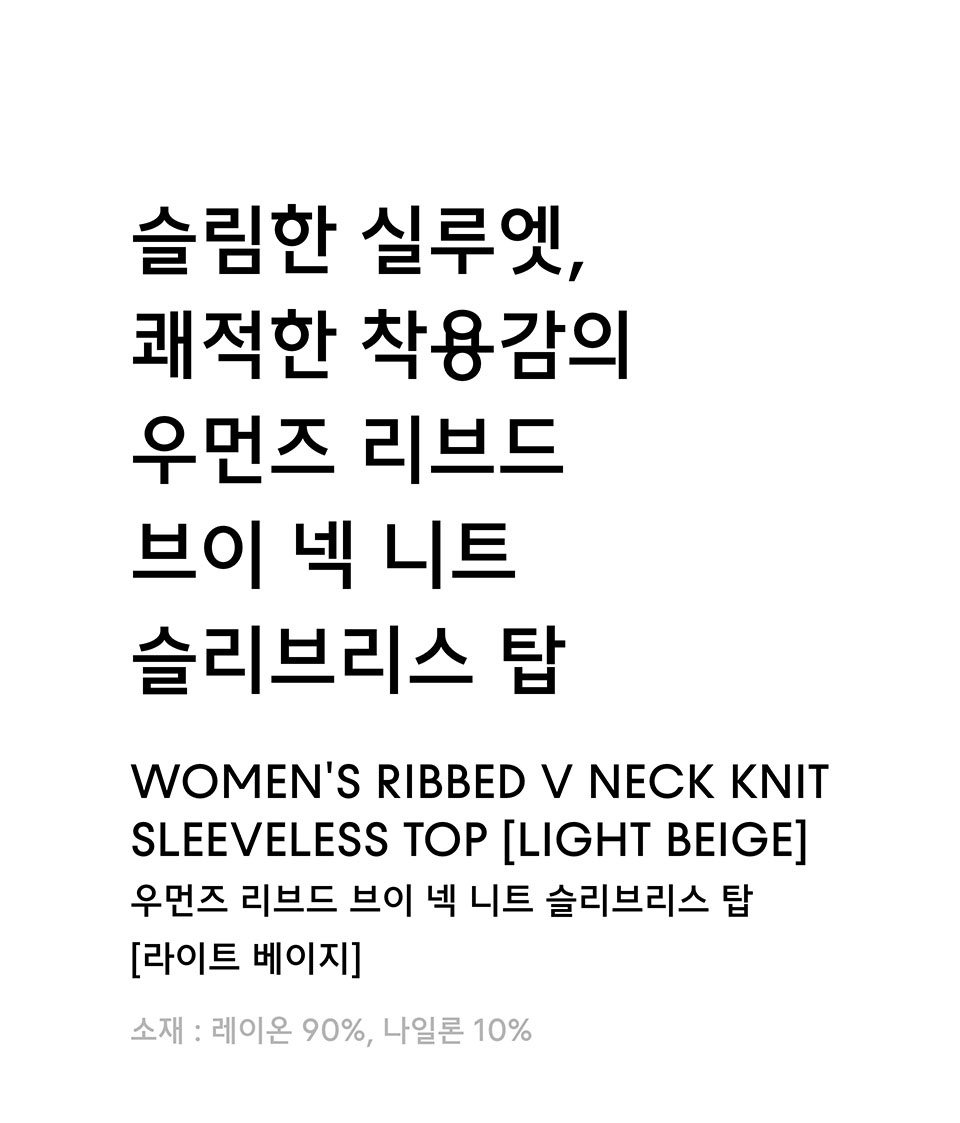 우먼즈 리브드 브이 넥 니트 슬리브리스 탑 [라이트 베이지]