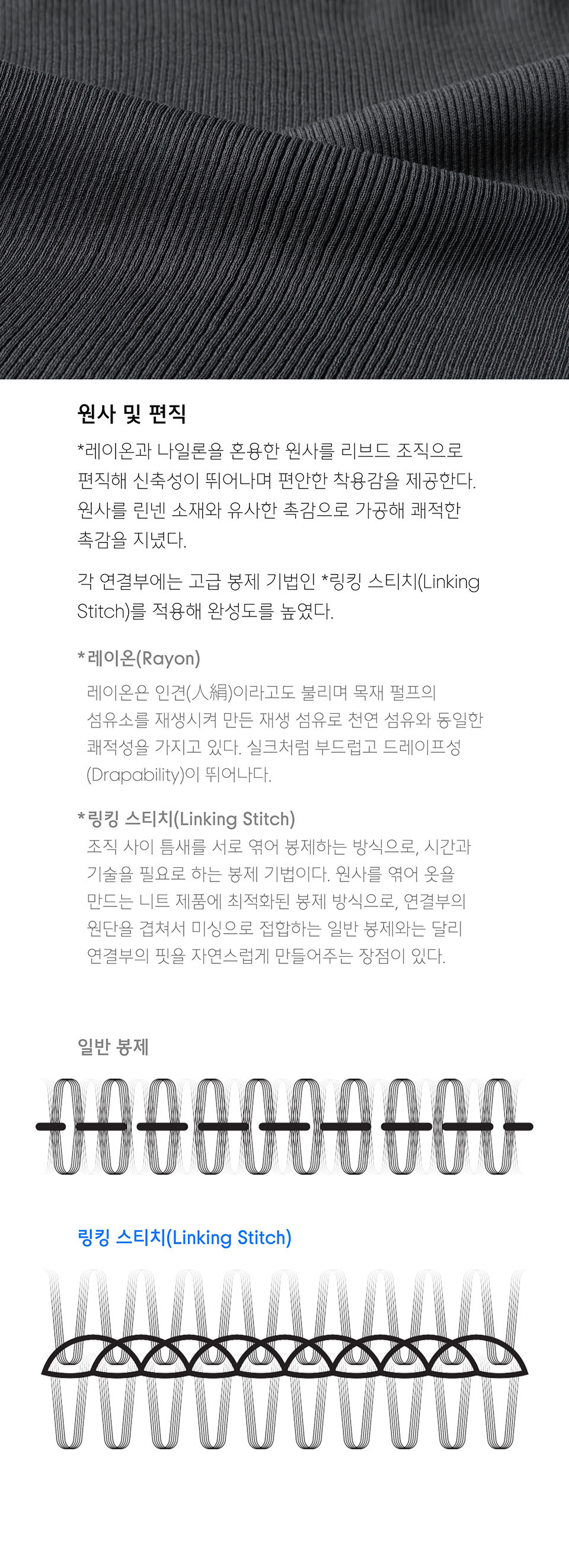 우먼즈 리브드 슬림 와이드 헨리 넥 긴소매 티셔츠 [건메탈]