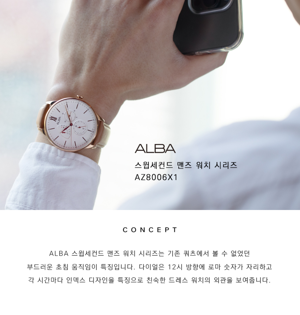 알바(ALBA)는 세이코사의 고품격 패션 시계 브랜드 입니다. 독특한 디자인, 우수한 품질, 합리적인 가격을 바탕으로 젊은 층으로부터 큰 사랑을 받고 있습니다.