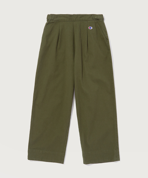 여성 하이웨이스트 코튼 스트레치 턱 팬츠 Normal Khaki