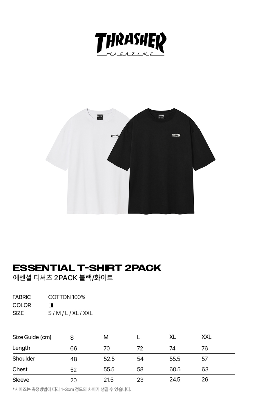 에센셜 티셔츠 2PACK 블랙/화이트