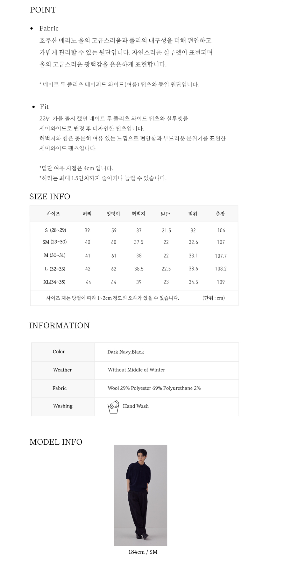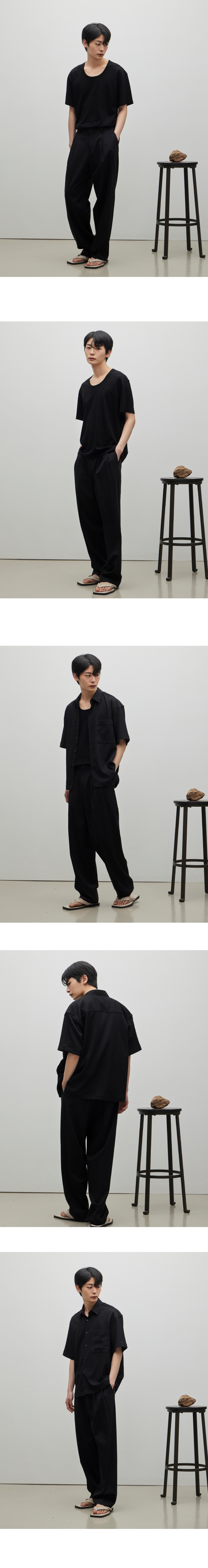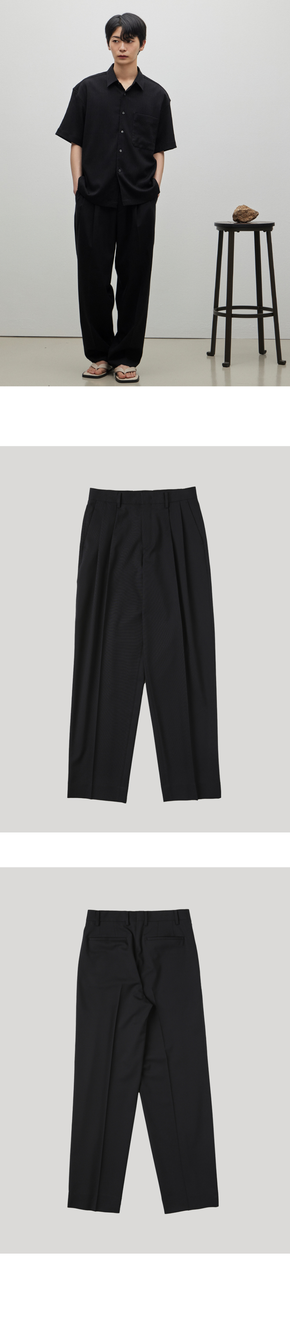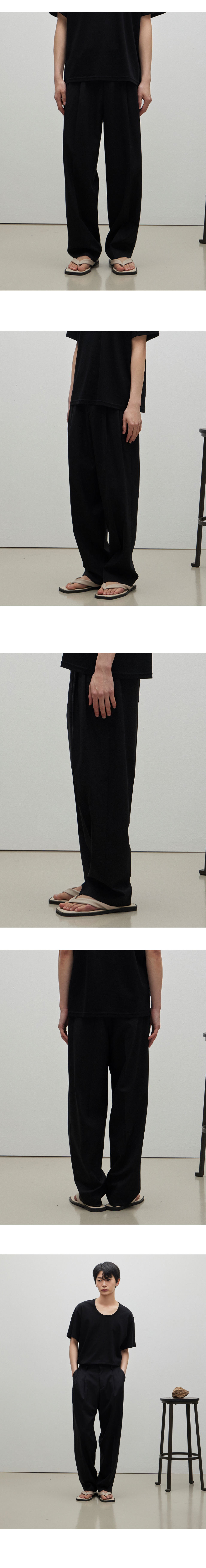네이트 울 블랜디드 투턱 세미와이드 팬츠 블랙