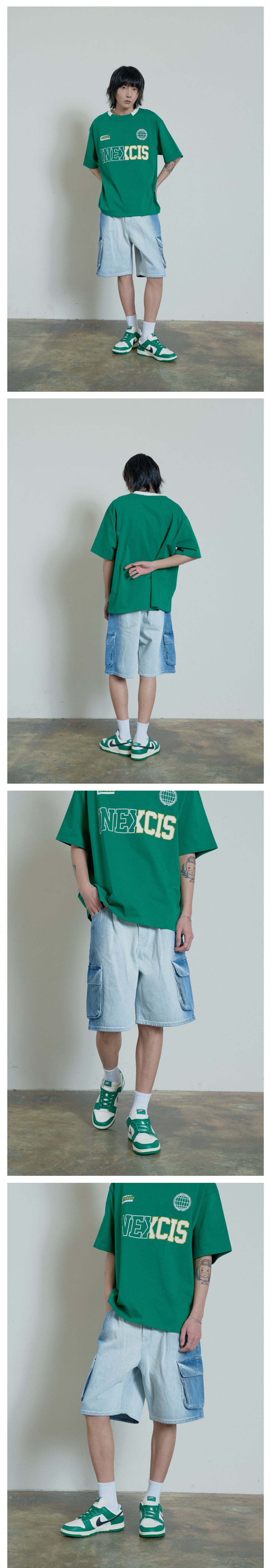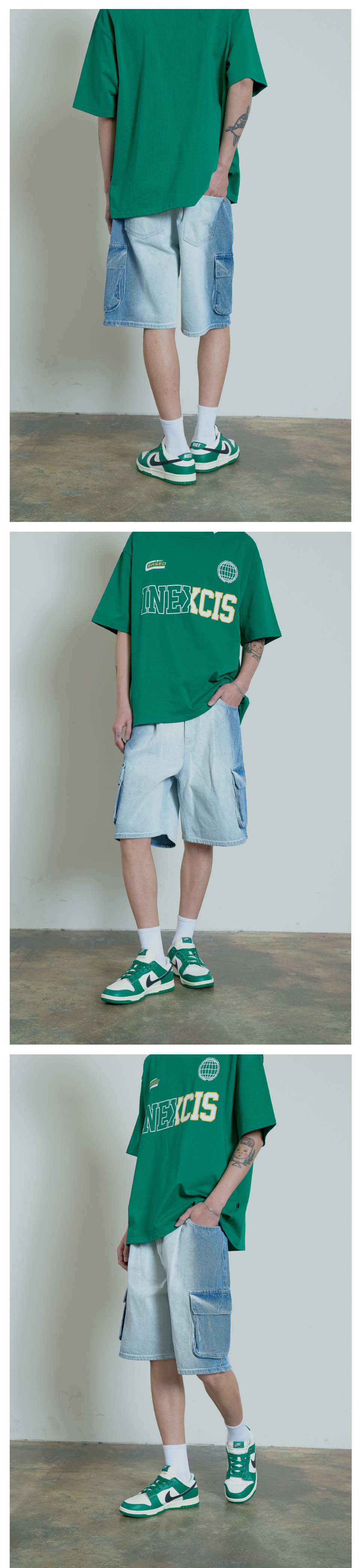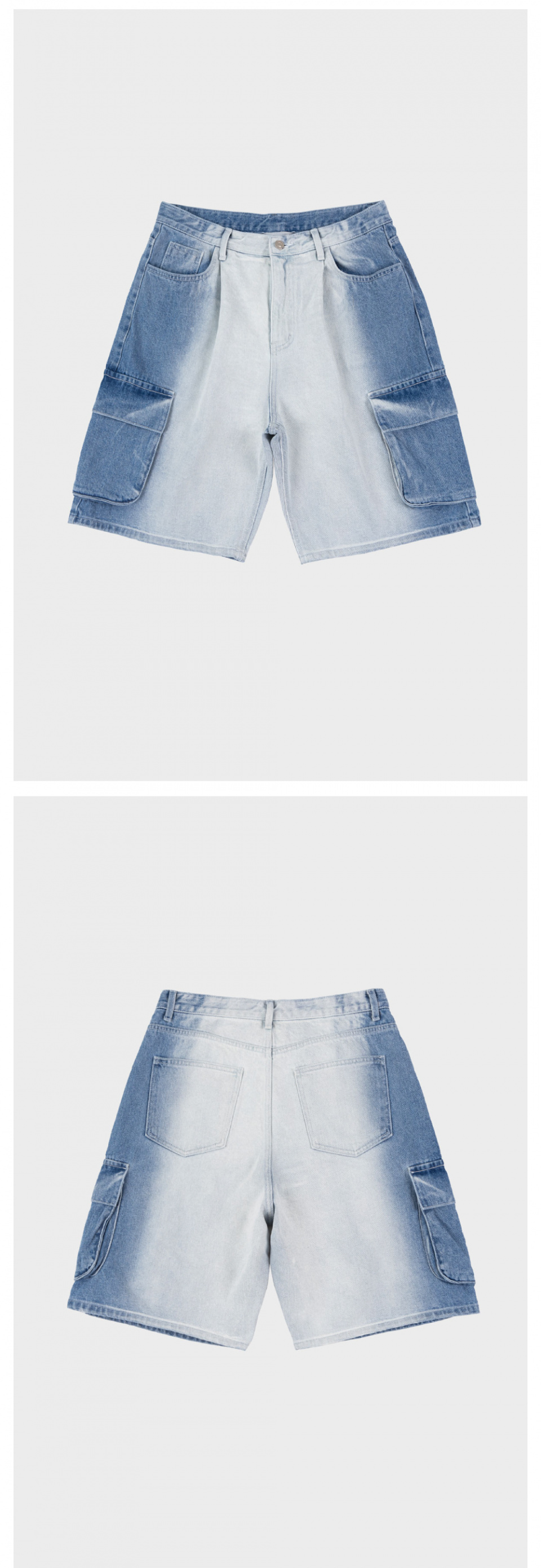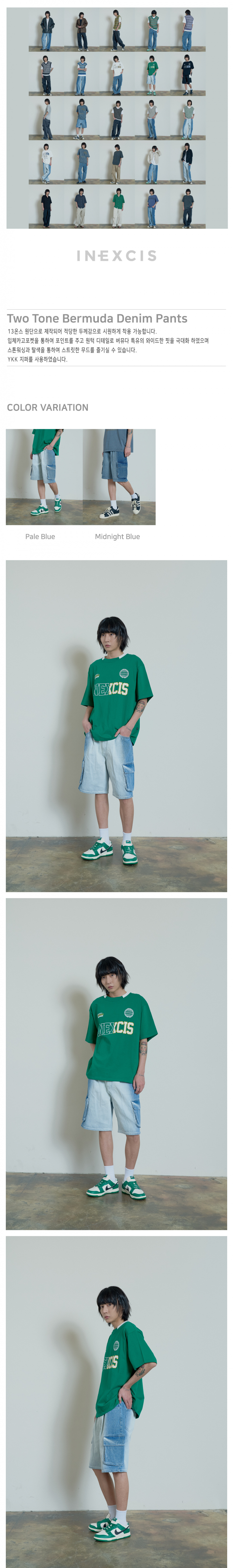 Two Tone Bermuda Denim Pants (Pale Blue)