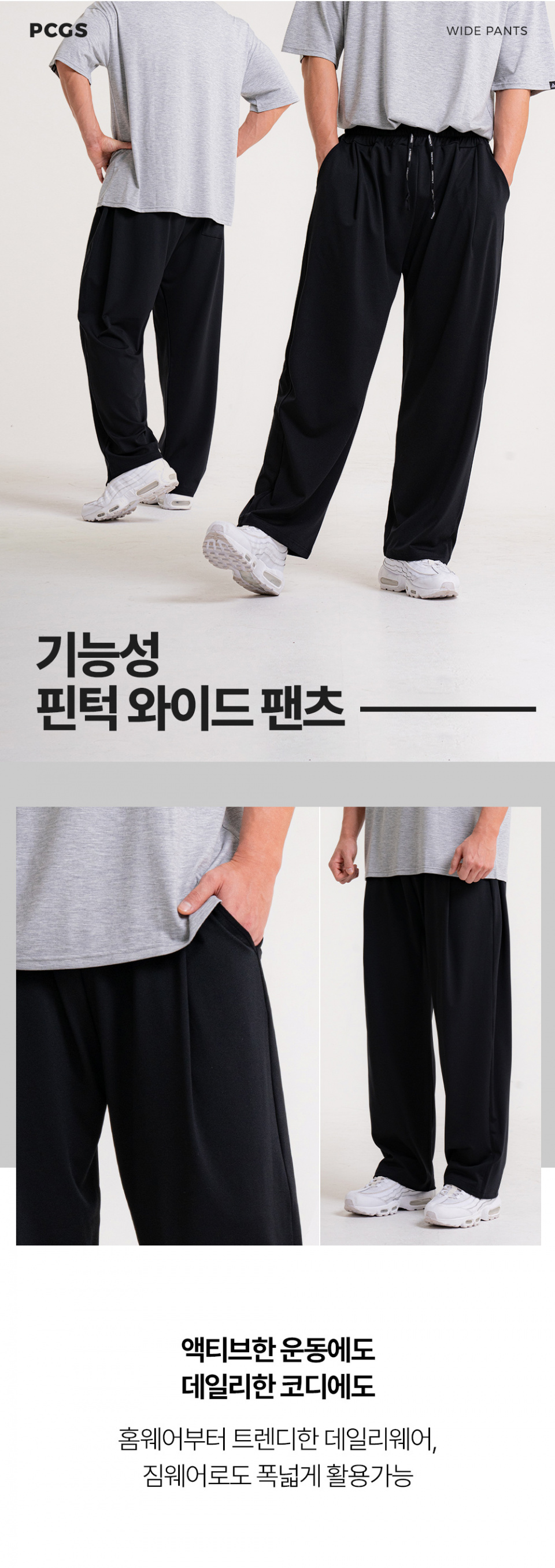 P4024 기능성 핀턱 와이드 팬츠 [블랙]