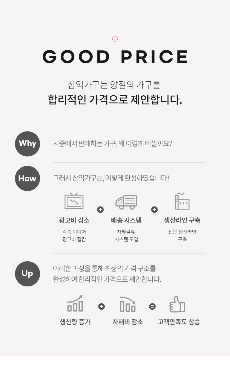 삼익가구(SAMICK)는 라이프스타일에 따른 공간의 가치 향상을 목표로 우수한 품질과 합리적인 가격, 차별화된 배송 시스템으로 고객 가치를 극대화하는 가구 유통 기업입니다.