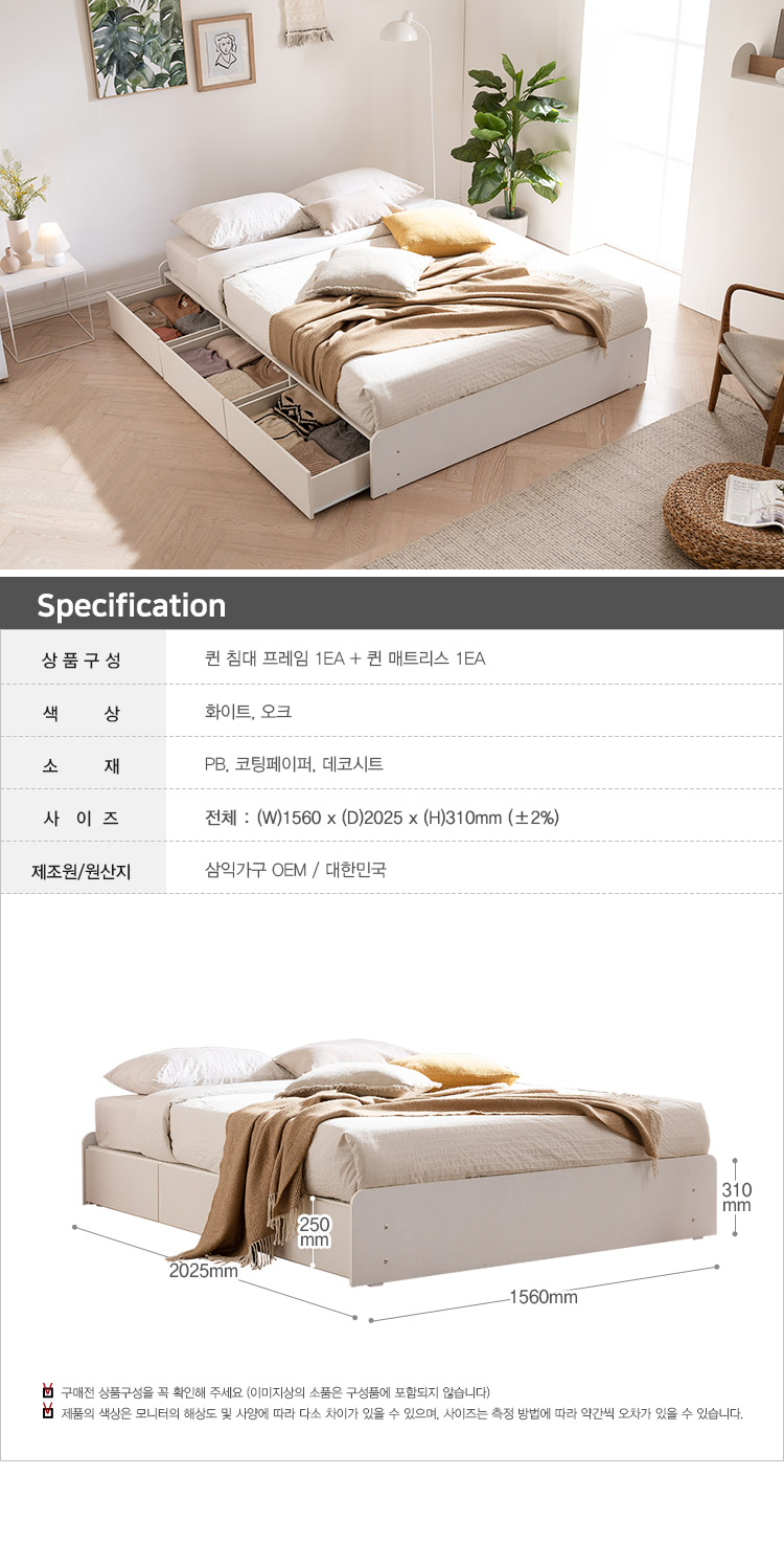 피터 빅서랍 3단 수납침대(YS 7존 독립스프링 매트리스-퀸)