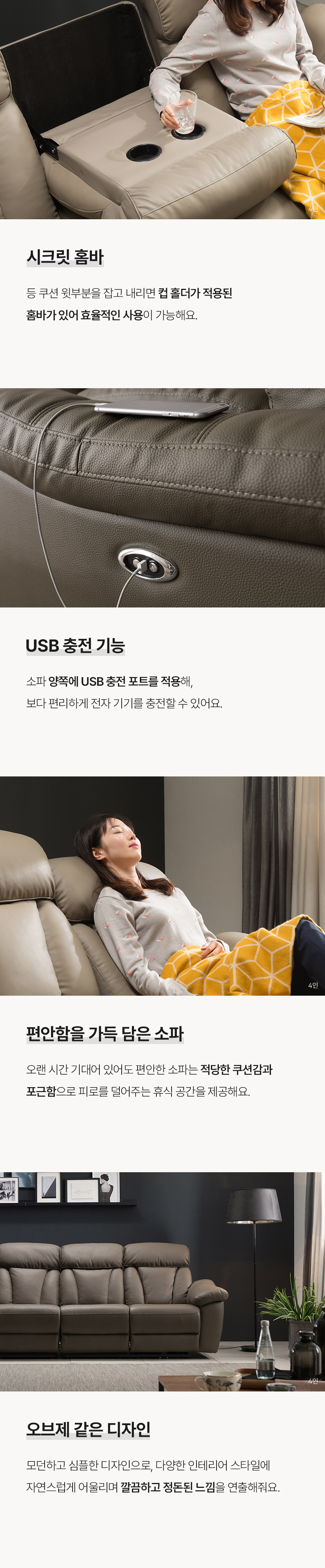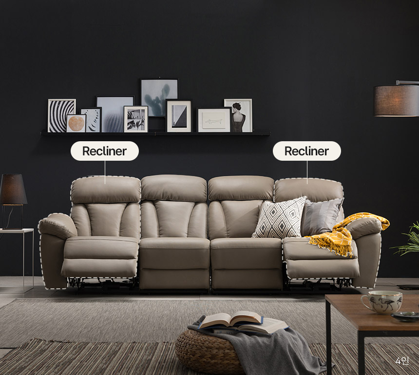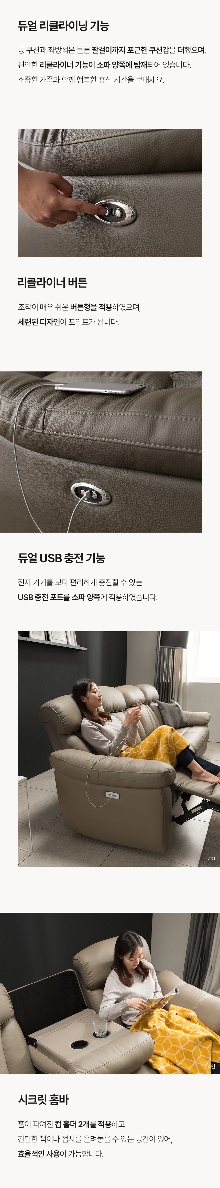 프라임 USB 4인용 전동 리클라이너 가죽소파(양방향)