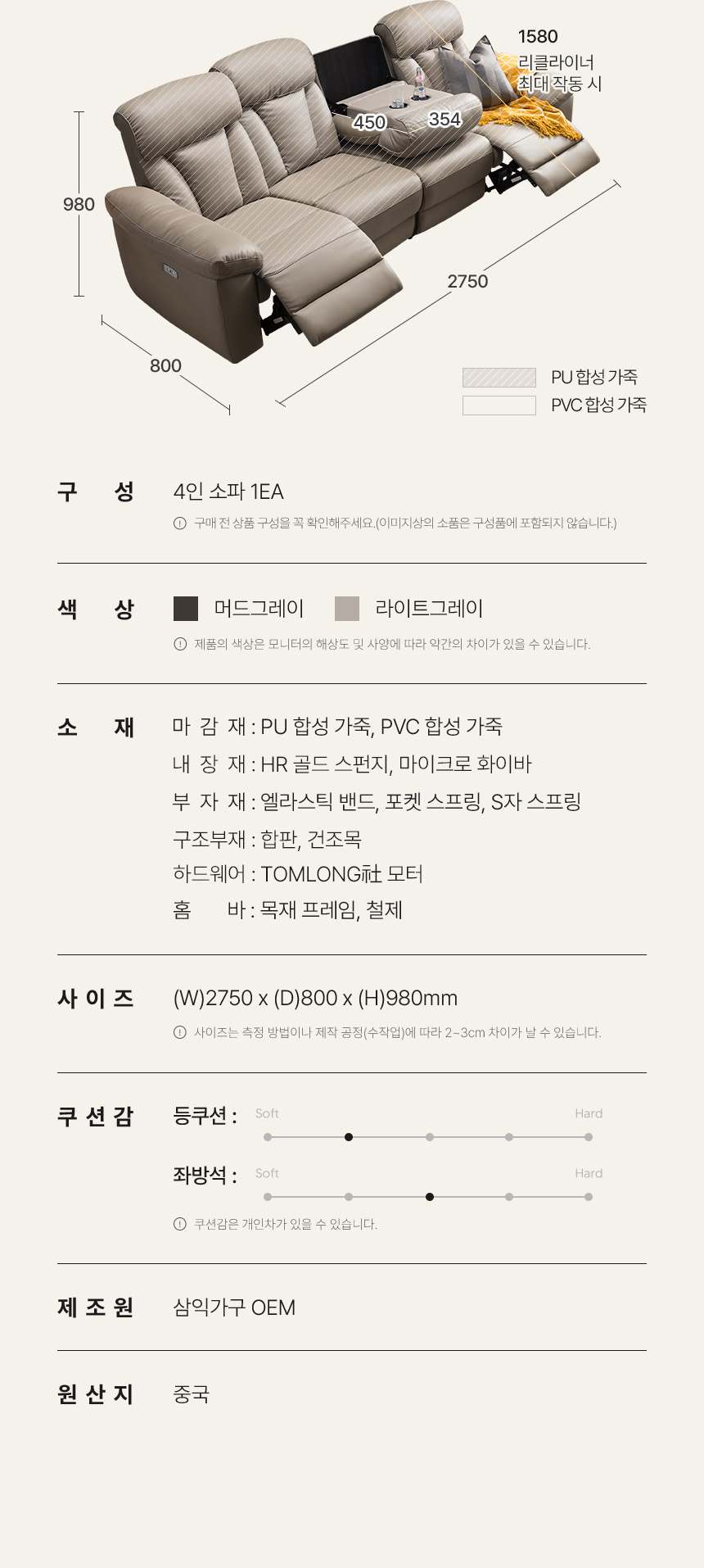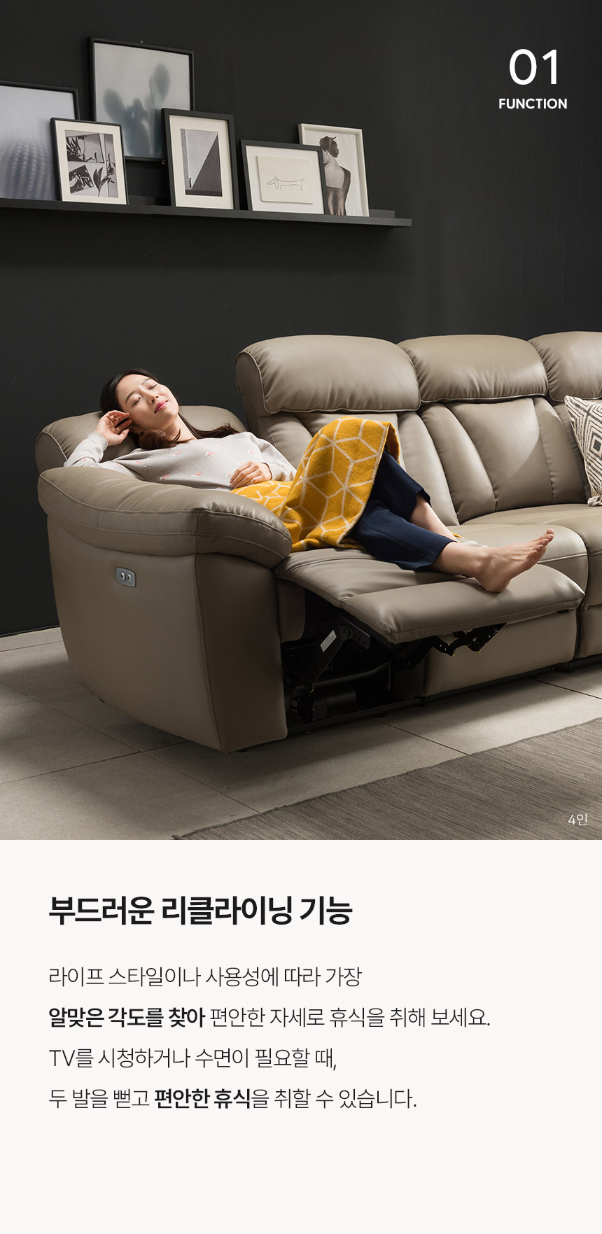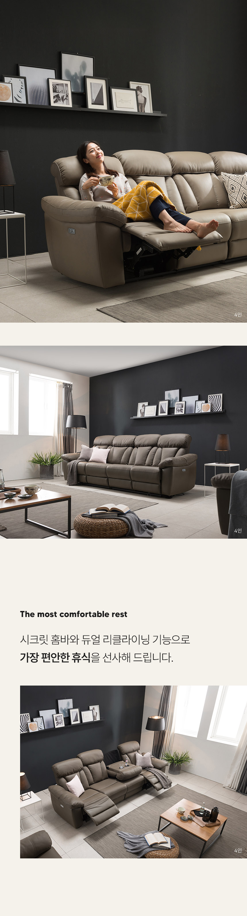 프라임 USB 4인용 전동 리클라이너 가죽소파(양방향)