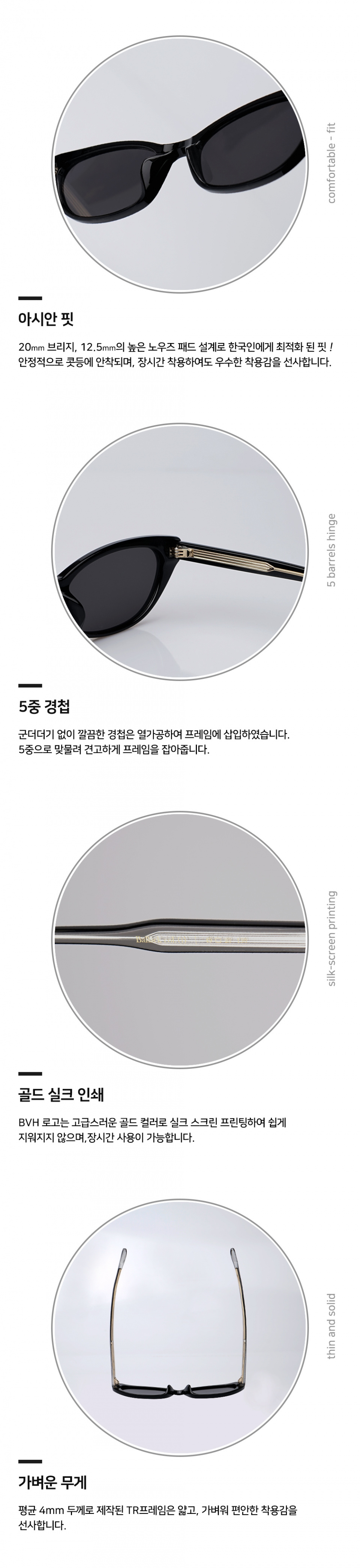 BVH EYEWEAR(비브이에이치)는 여러분야의 아티스트들과의 콜라보레이션으로 새로운 문화를 만들고 크리에이티브한 상품들을 제안하고 예술적인 고유의 디자인 프로세스를 거쳐 기획, 제작됩니다.