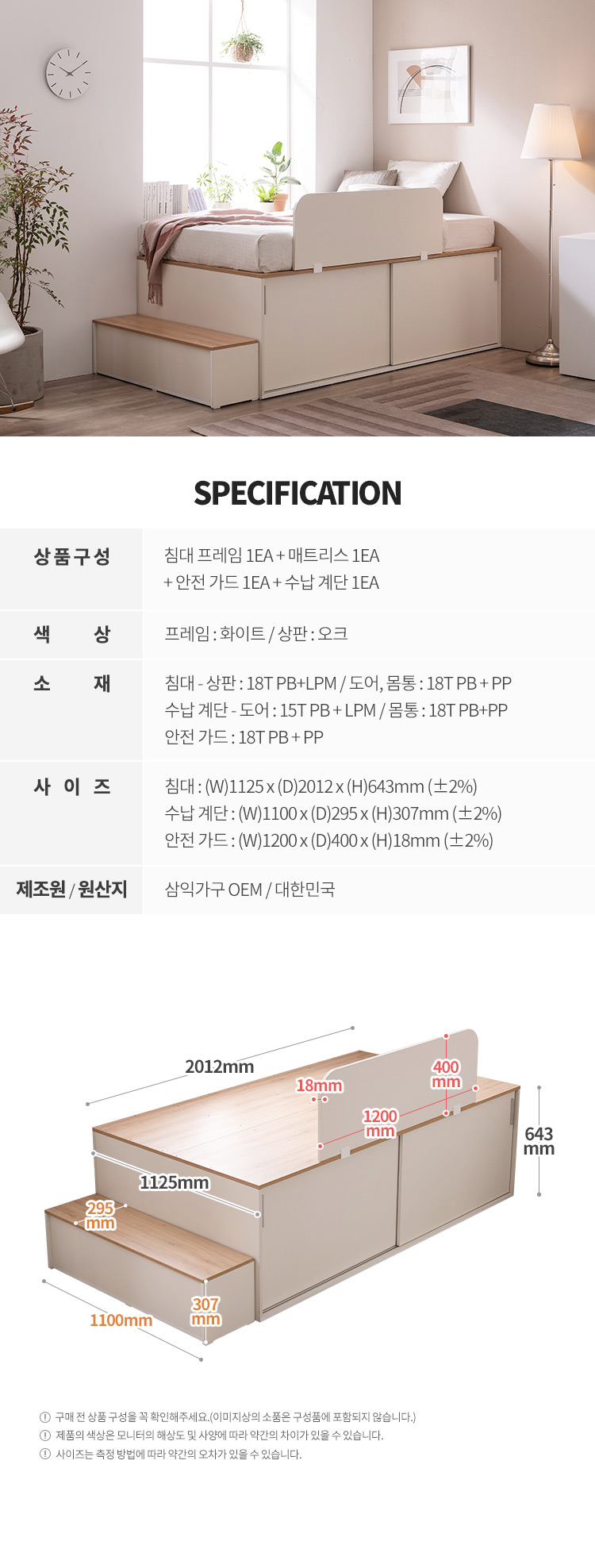 빅터 슬라이딩 빅수납 침대 풀세트SS(본넬매트+가드+계단)