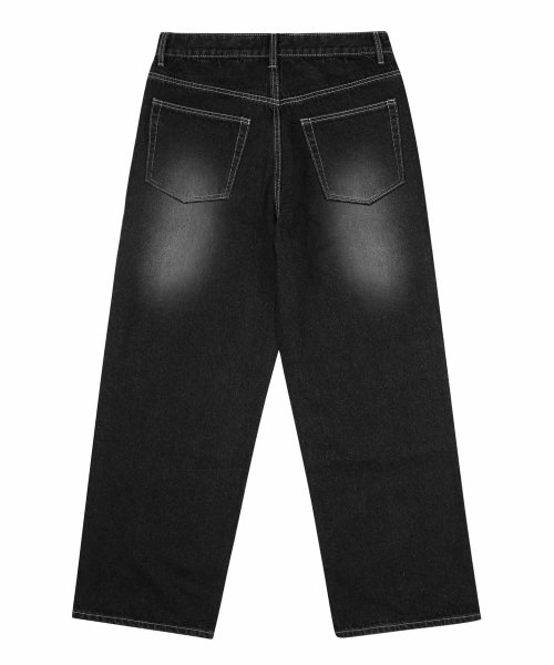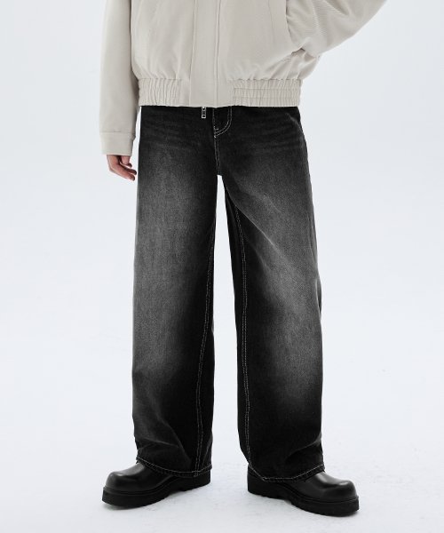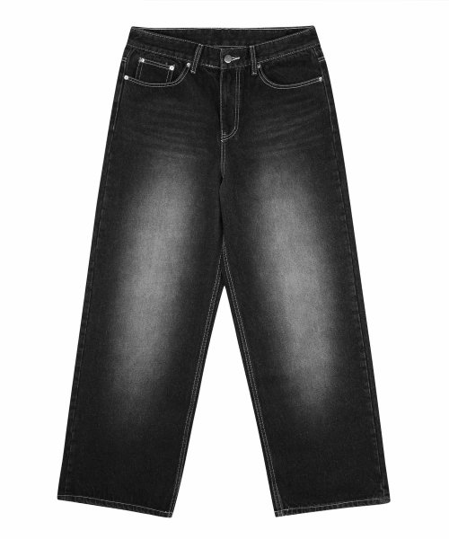 프론트 워싱 와이드 데님 팬츠 (NORMAL BLACK)