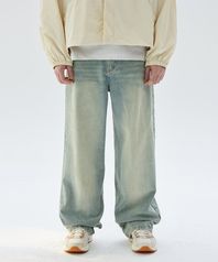 프론트 워싱 와이드 데님 팬츠 (BEIGE BLUE)