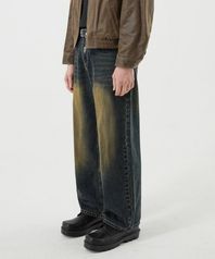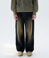 프론트 워싱 와이드 데님 팬츠 (YELLOW BLACK)