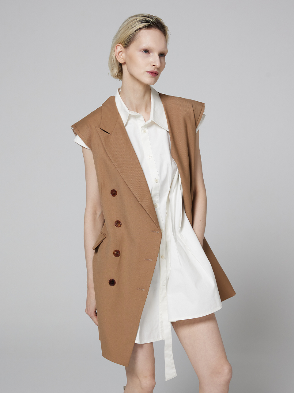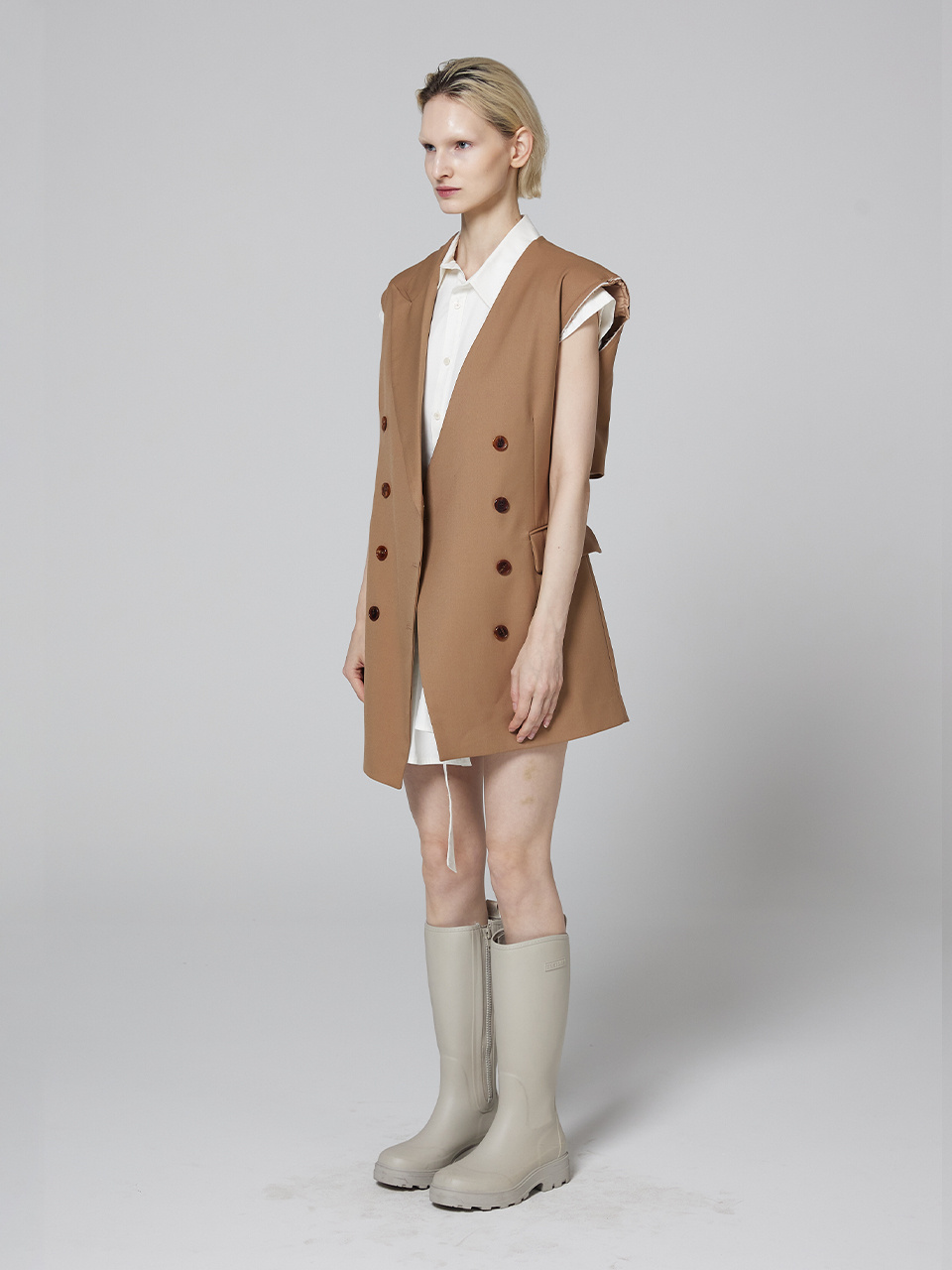 - 고밀도의 부드러운 울 혼방소재로 제작되어 자연스러운 실루엣
