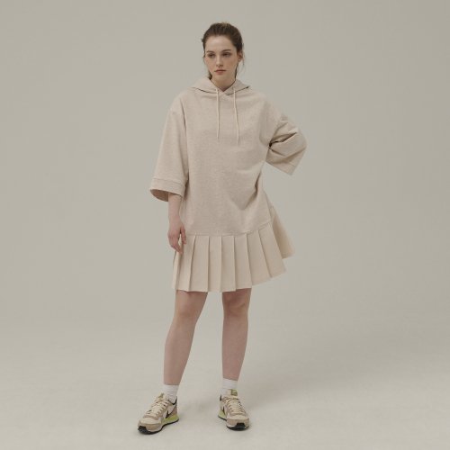 플리츠 후드 저지원피스 [오트밀]