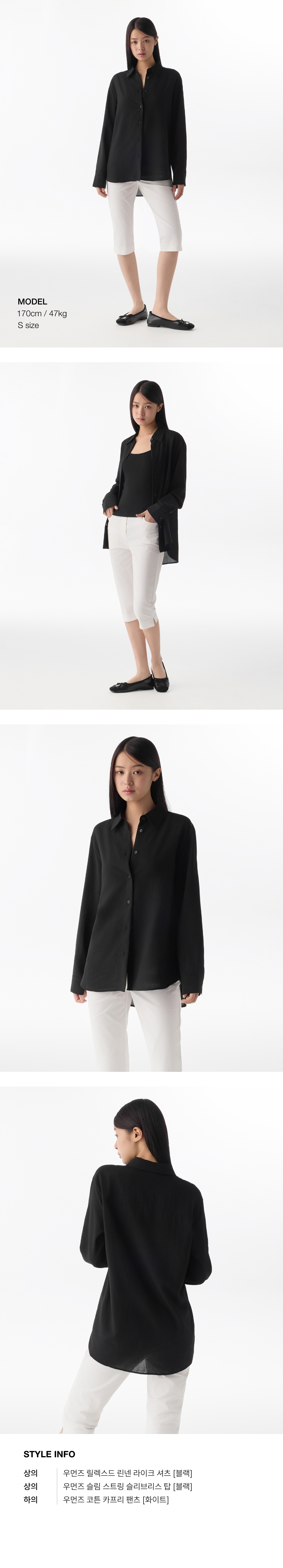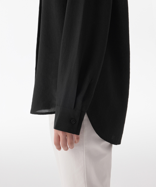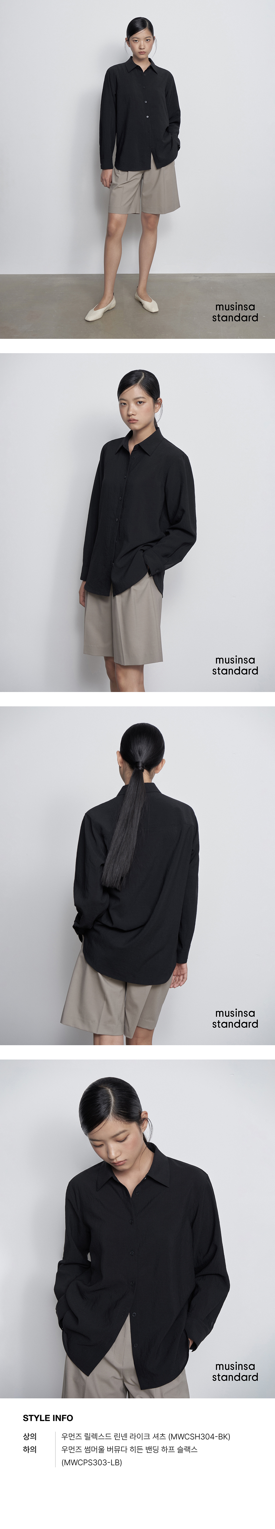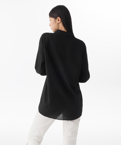 우먼즈 릴렉스드 린넨 라이크 셔츠 [블랙]