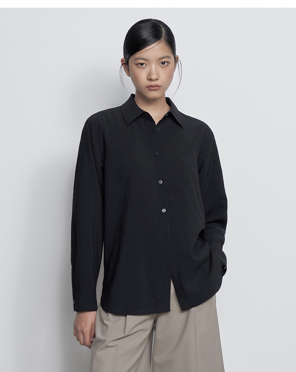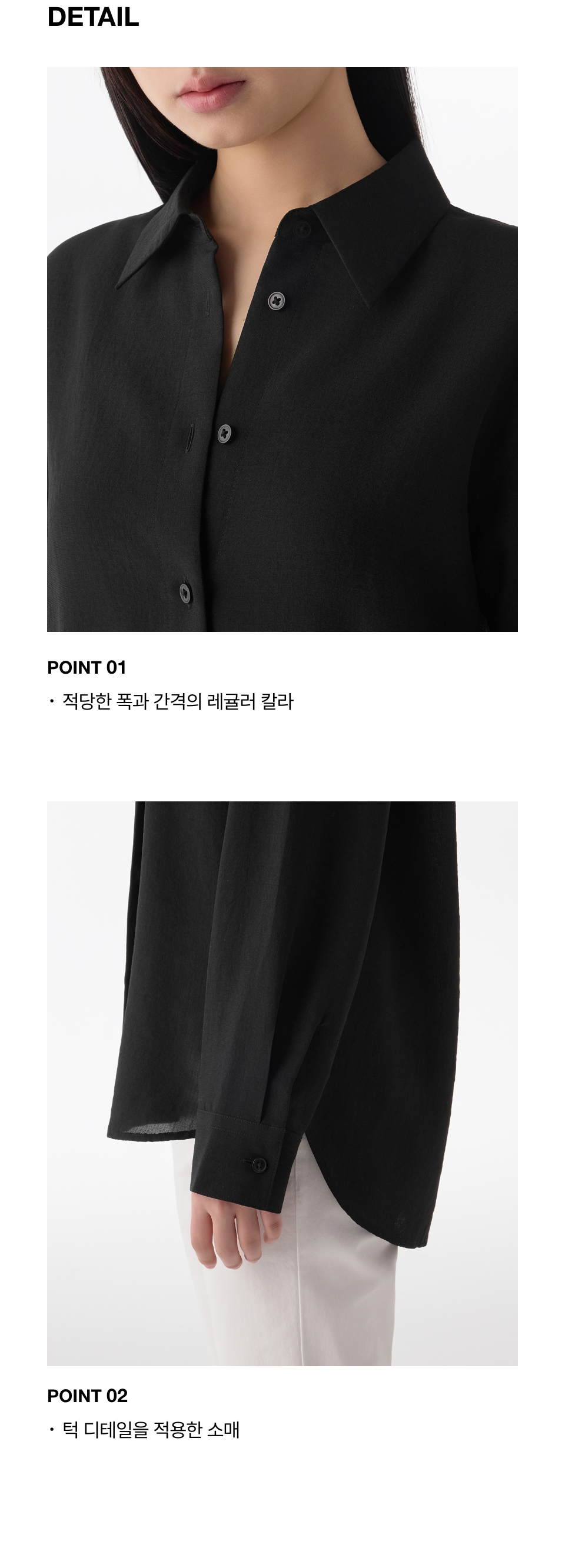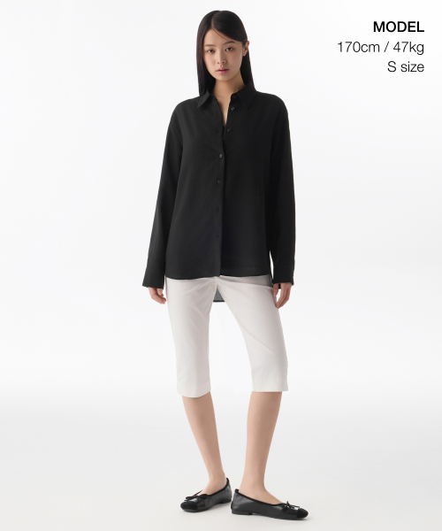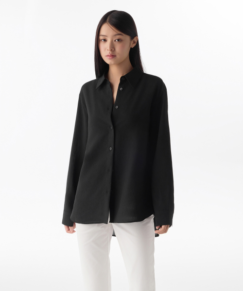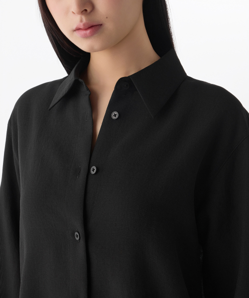 우먼즈 릴렉스드 린넨 라이크 셔츠 [블랙]