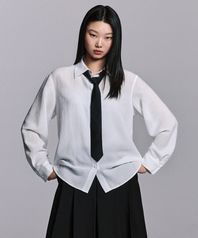우먼즈 릴렉스드 린넨 라이크 셔츠 [화이트]