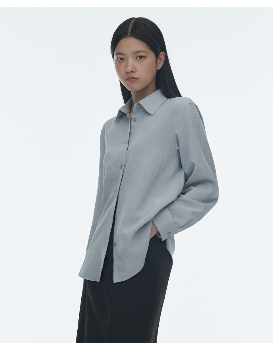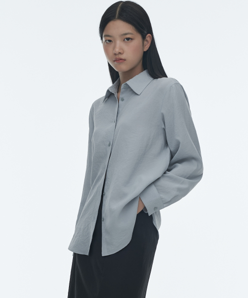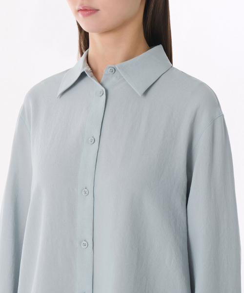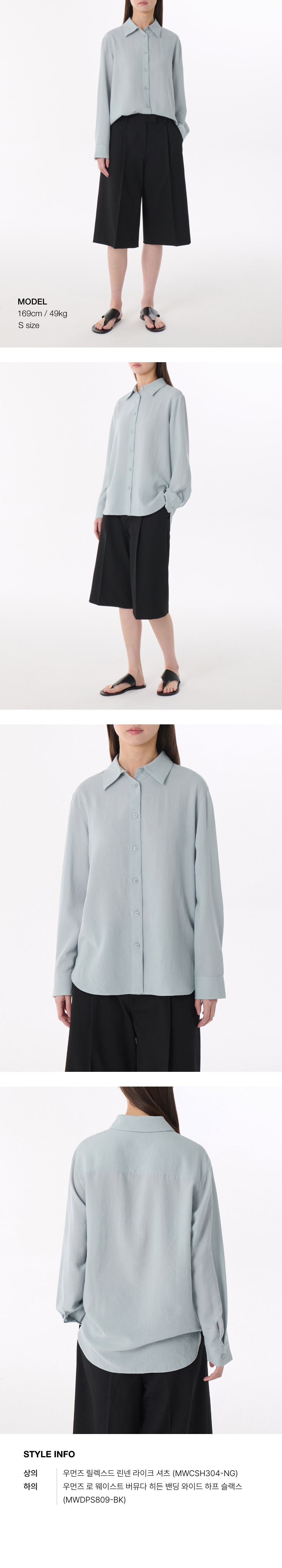 우먼즈 릴렉스드 린넨 라이크 셔츠 [민트 그레이]