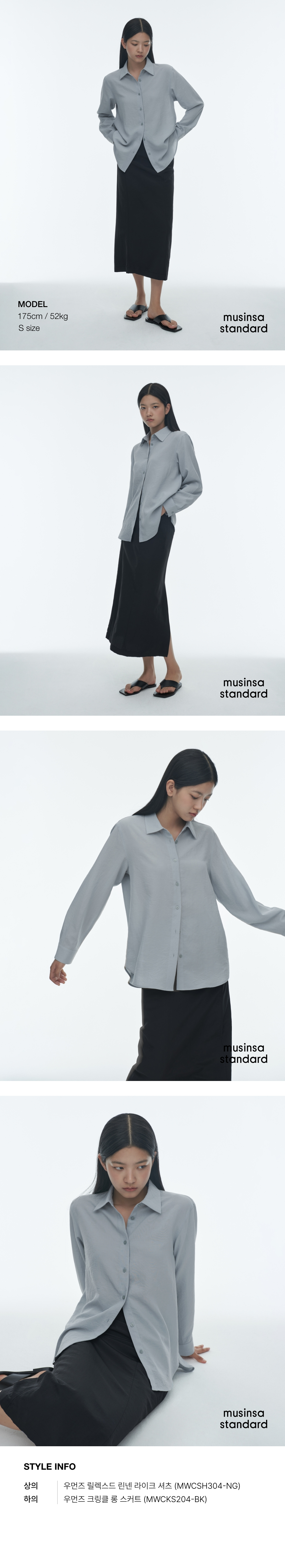 우먼즈 릴렉스드 린넨 라이크 셔츠 [블랙]