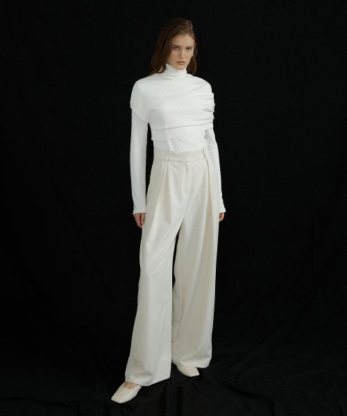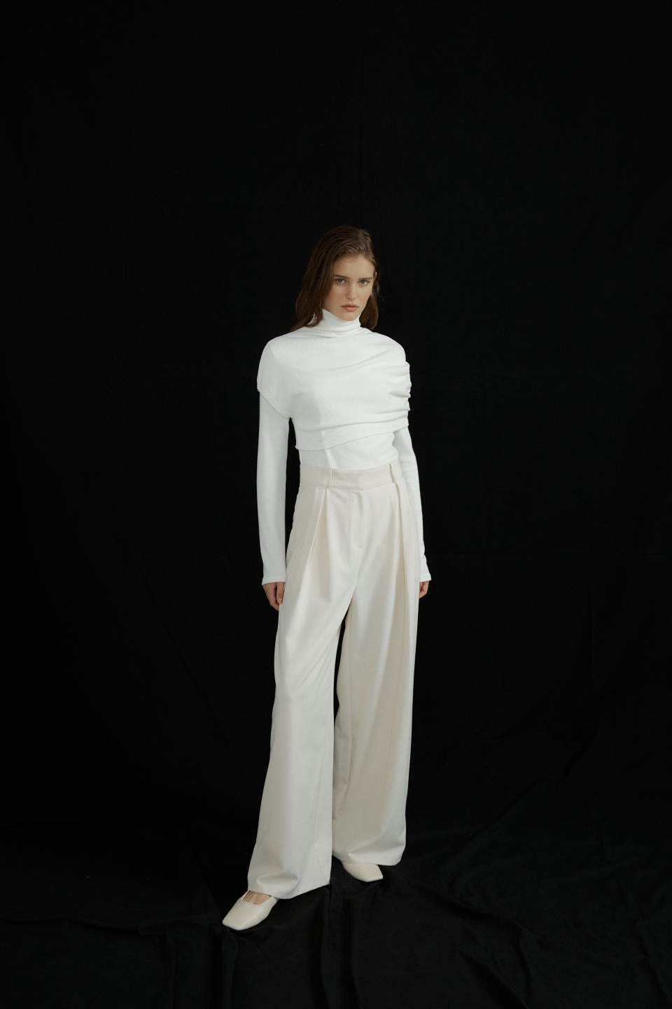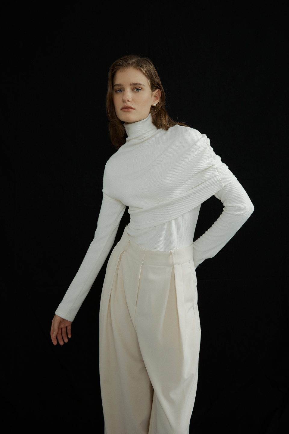 Hole Band Collar Cowl Neck Blouse OFF WHITE