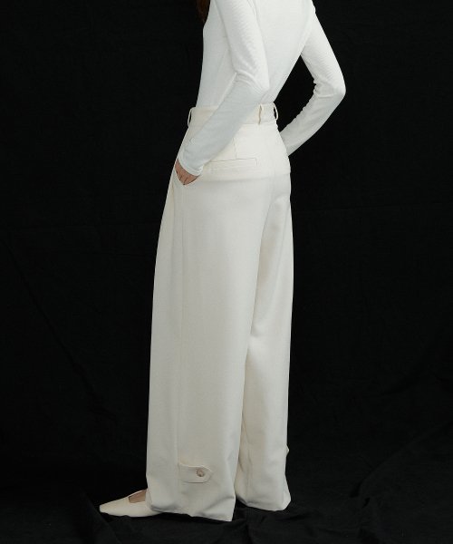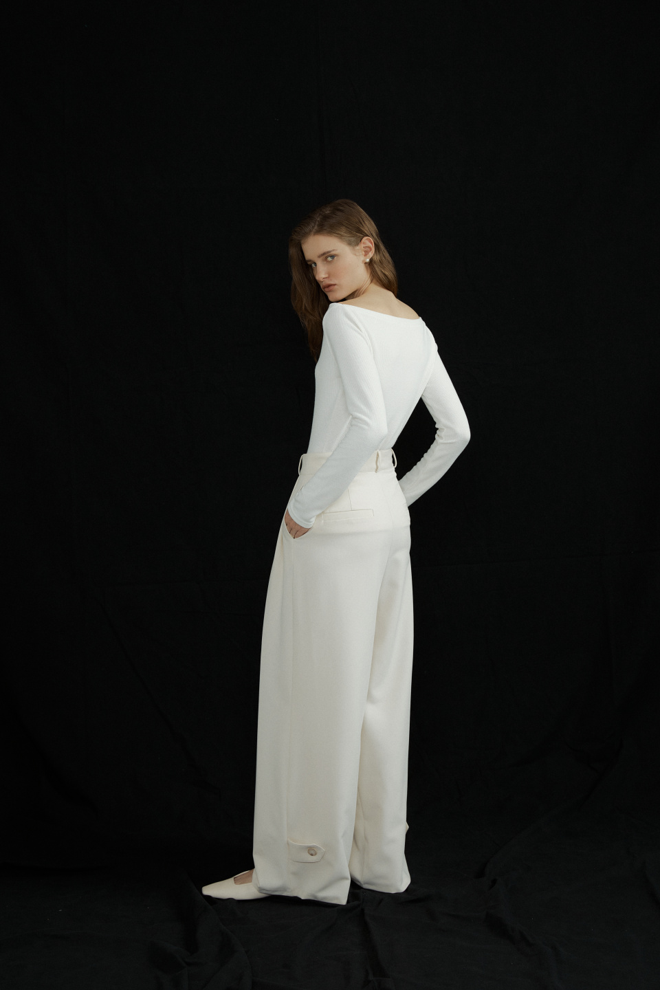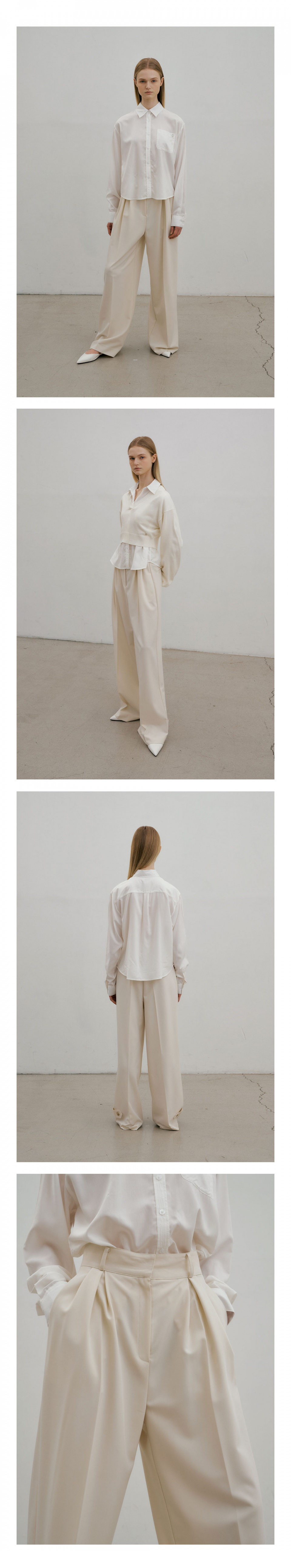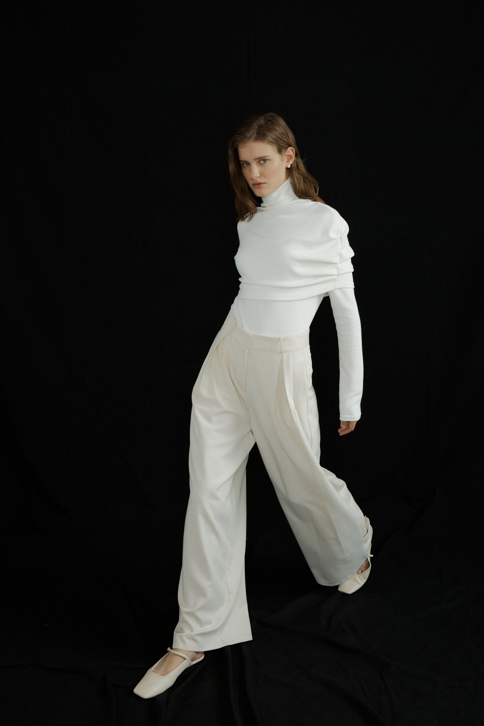 Hole Band Collar Cowl Neck Blouse OFF WHITE