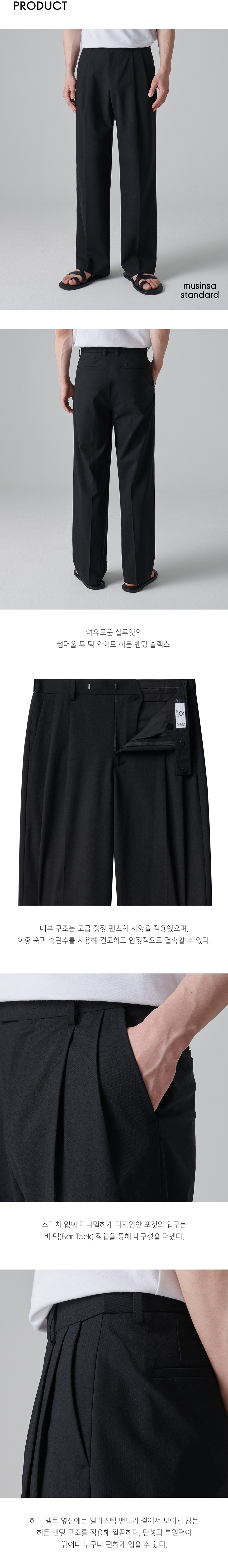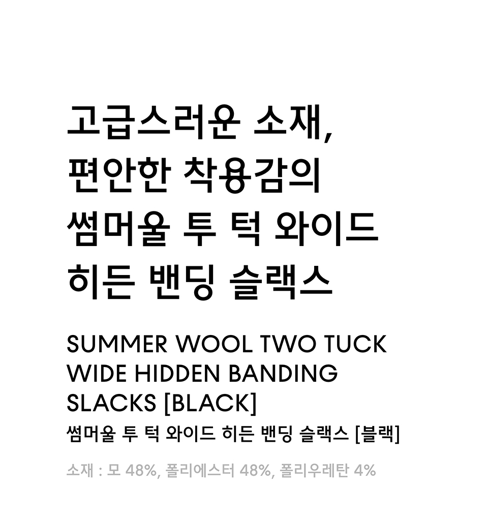 썸머울 투 턱 와이드 히든 밴딩 슬랙스 [블랙]