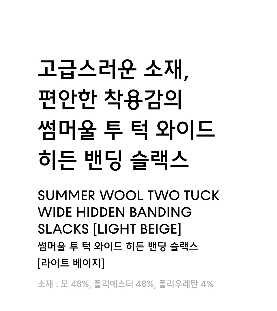 썸머울 투 턱 와이드 히든 밴딩 슬랙스 [라이트 베이지]