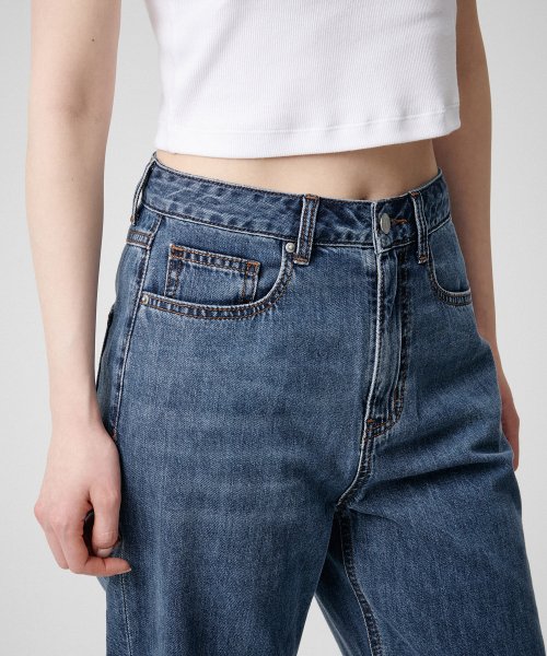 우먼즈 라이트웨이트 루즈 스트레이트 데님 팬츠 [미디엄 인디고]