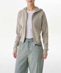 우먼즈 리브드 슬림 니트 후디드 집업 [웜 그레이]