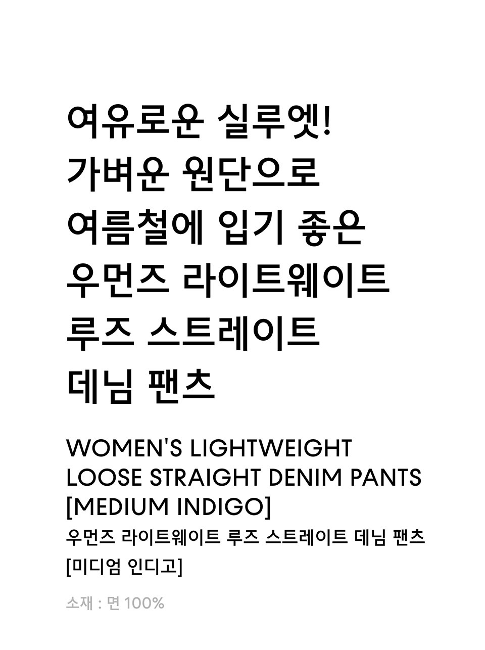 우먼즈 라이트웨이트 루즈 스트레이트 데님 팬츠 [라이트 인디고]