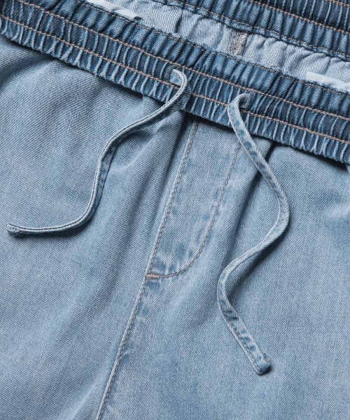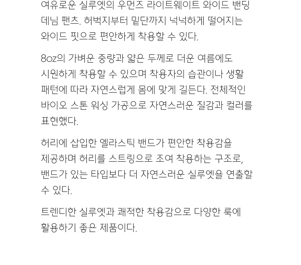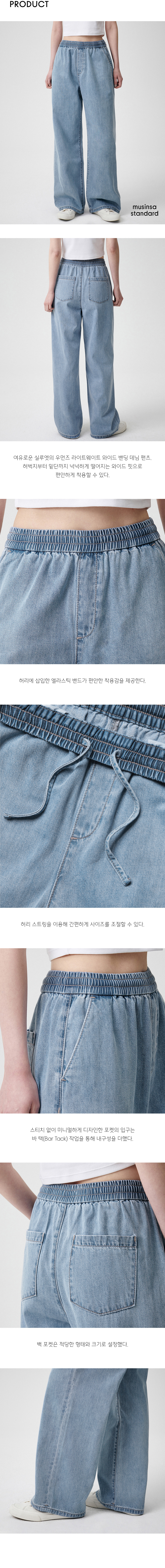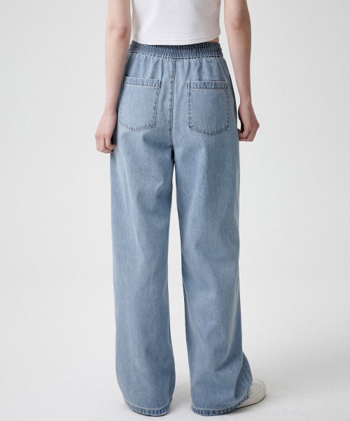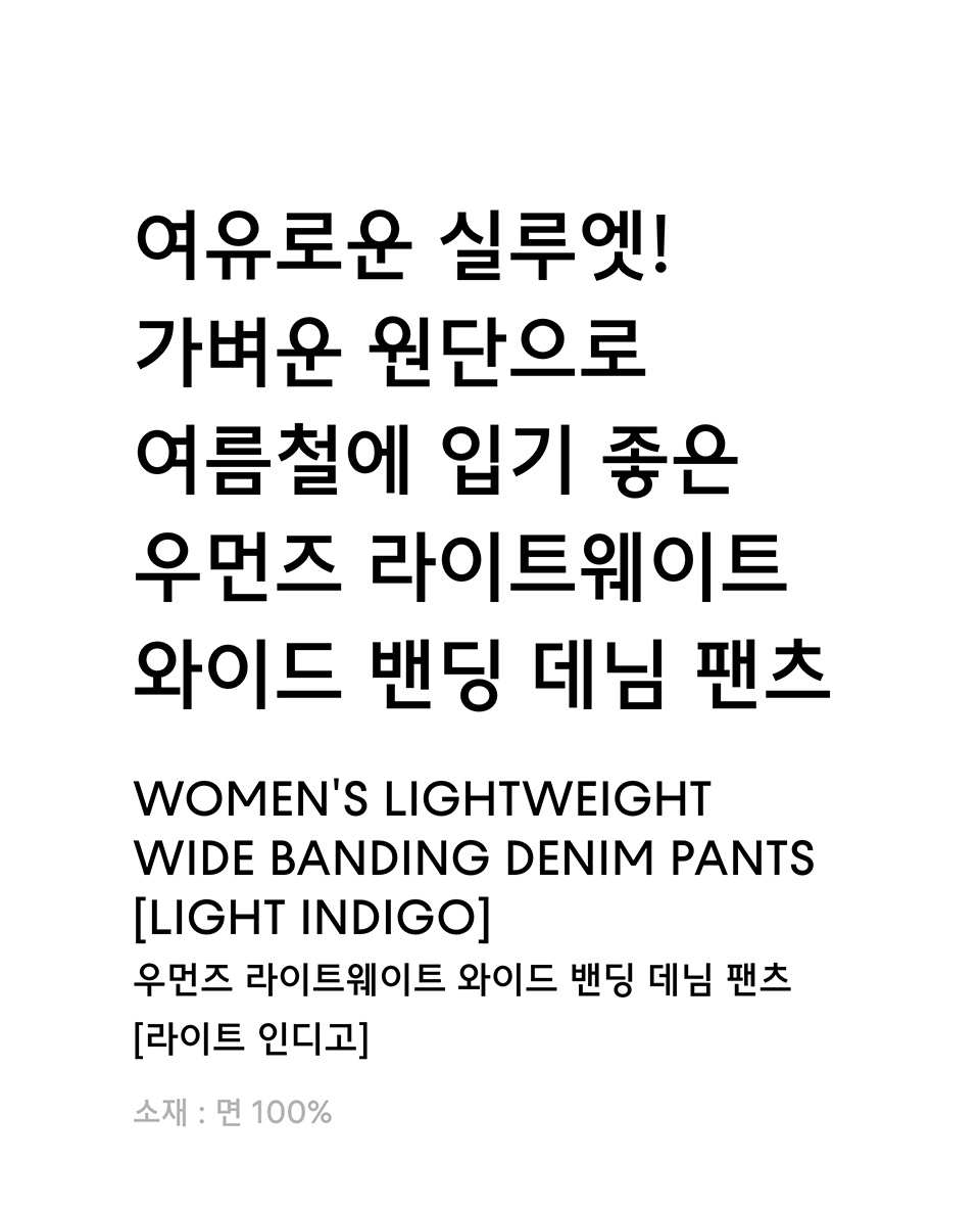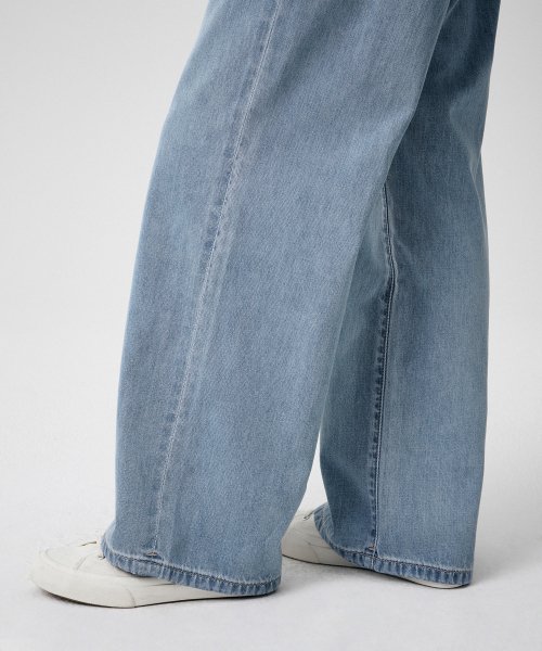 우먼즈 라이트웨이트 와이드 밴딩 데님 팬츠 [라이트 인디고]