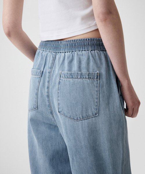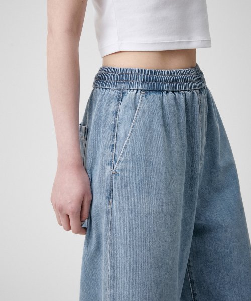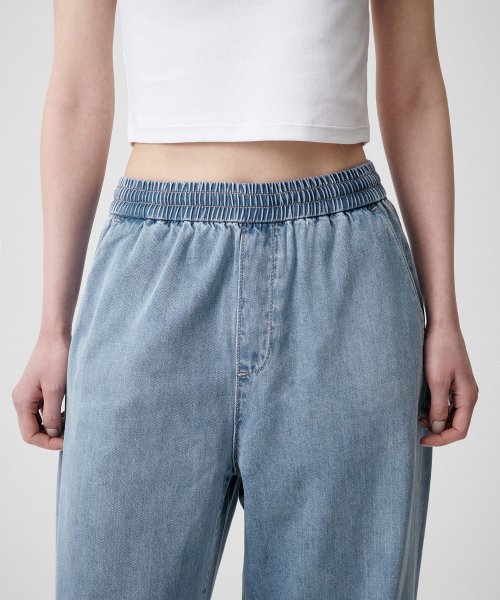 우먼즈 루즈 트라페즈 밴딩 데님 팬츠 [미디엄 인디고]