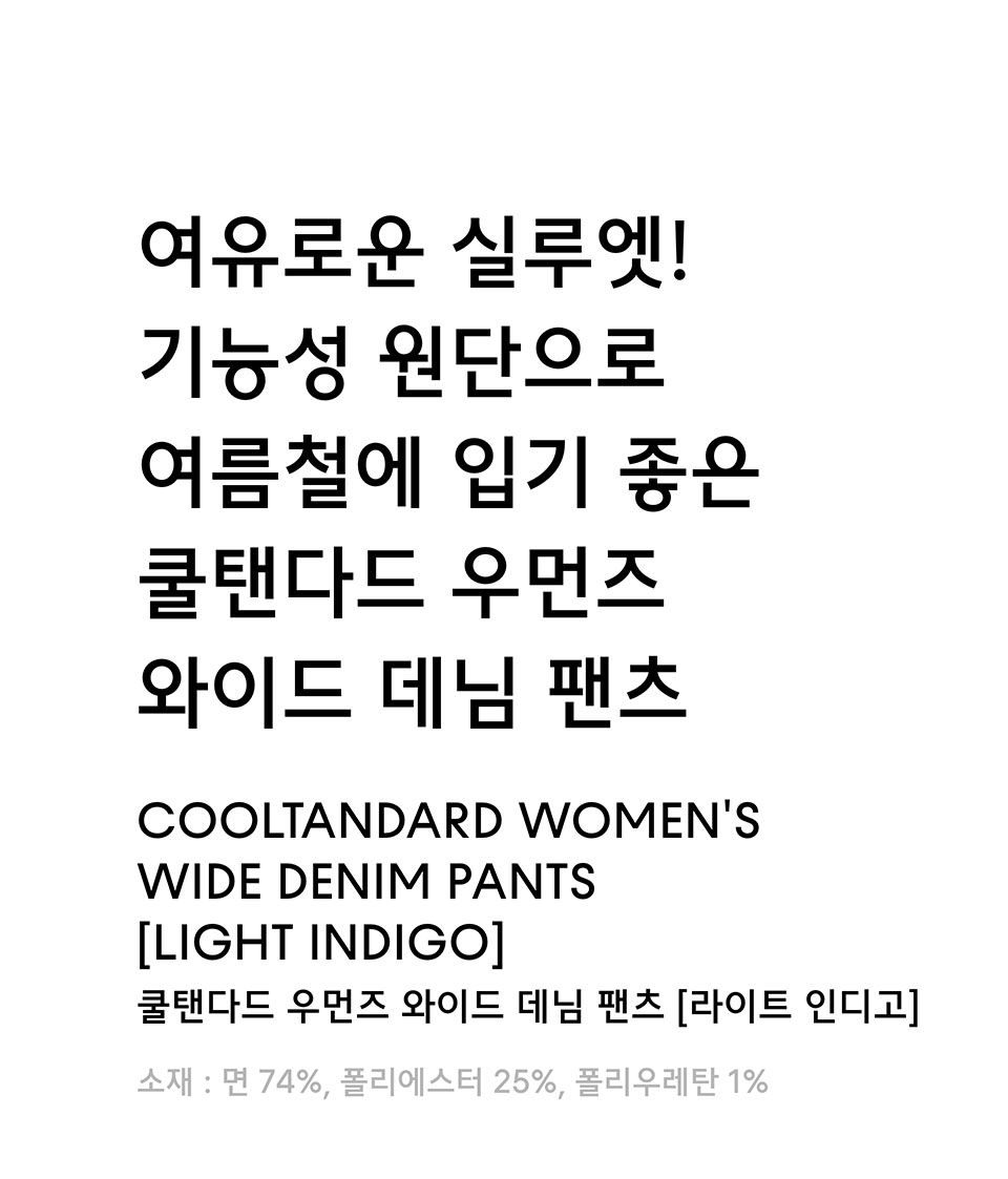 [쿨탠다드] 우먼즈 와이드 데님 팬츠 [라이트 인디고]
