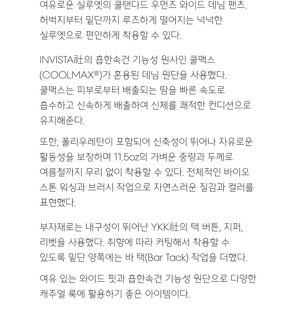 [쿨탠다드] 우먼즈 와이드 데님 팬츠 [워시드 블랙]