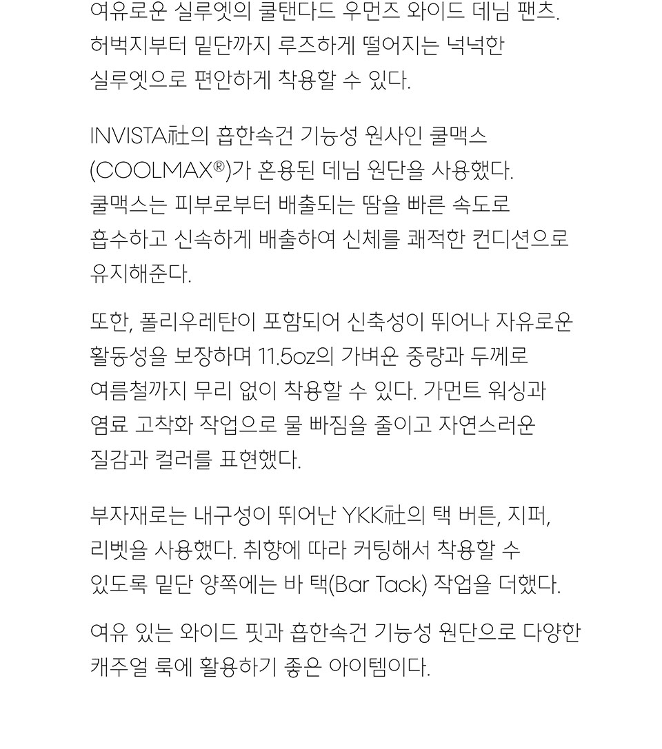 [쿨탠다드] 우먼즈 와이드 데님 팬츠 [워시드 블랙]