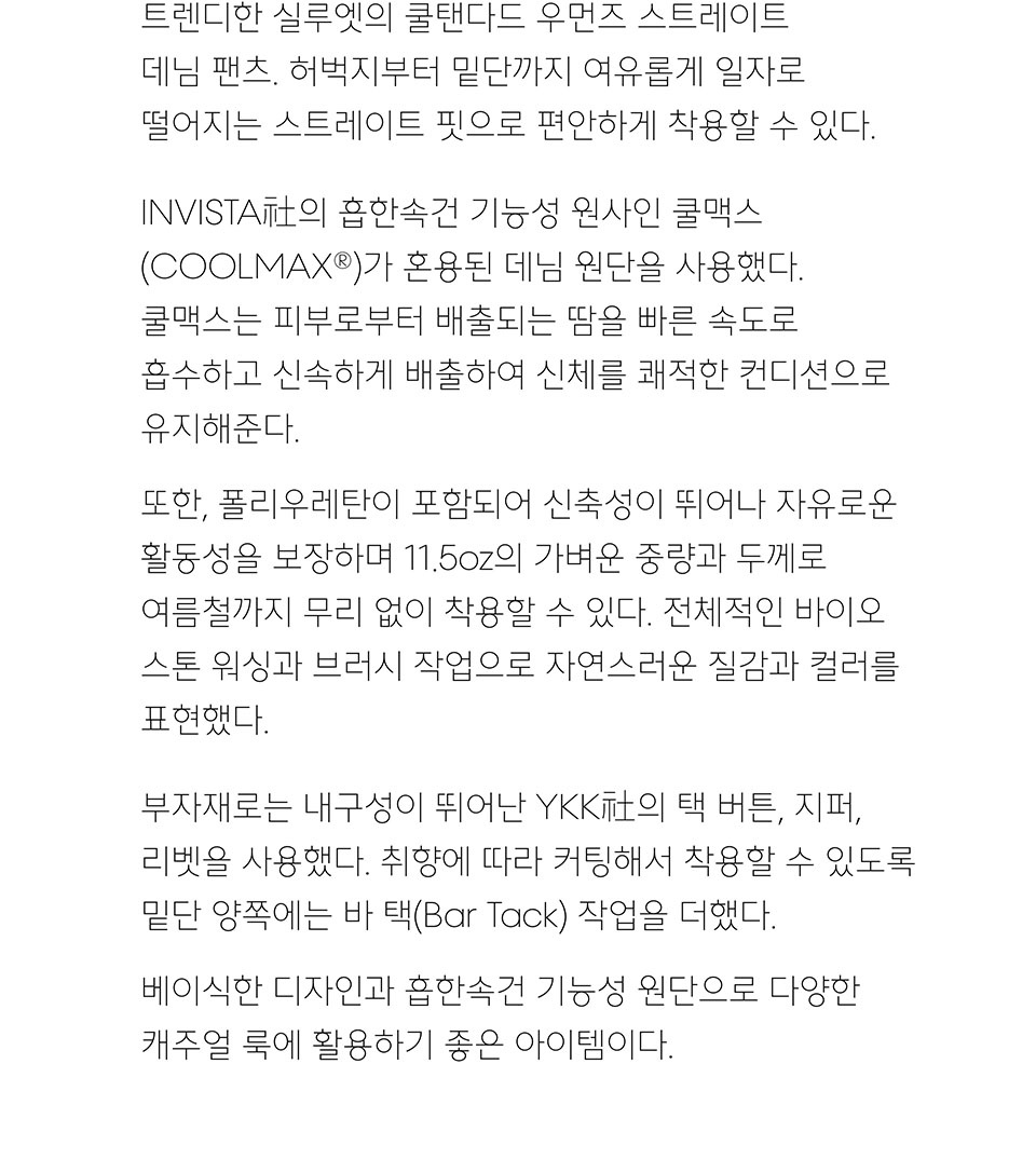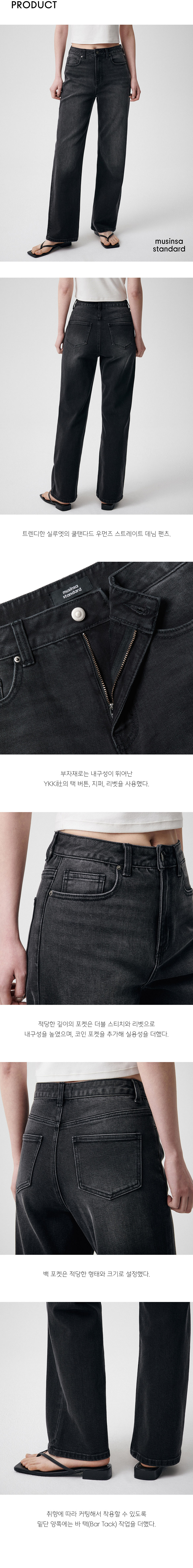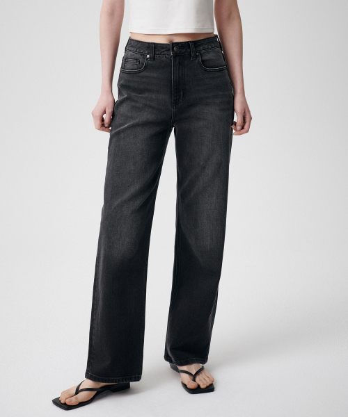 [쿨탠다드] 우먼즈 스트레이트 데님 팬츠 [워시드 블랙]