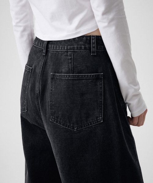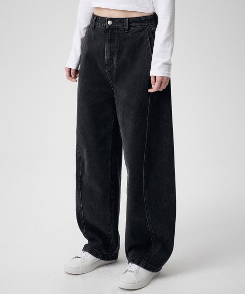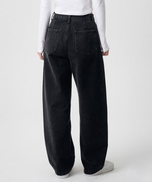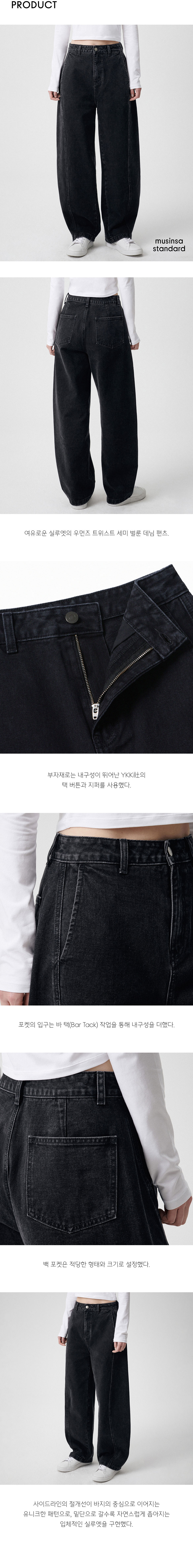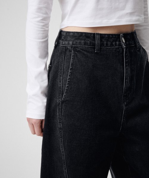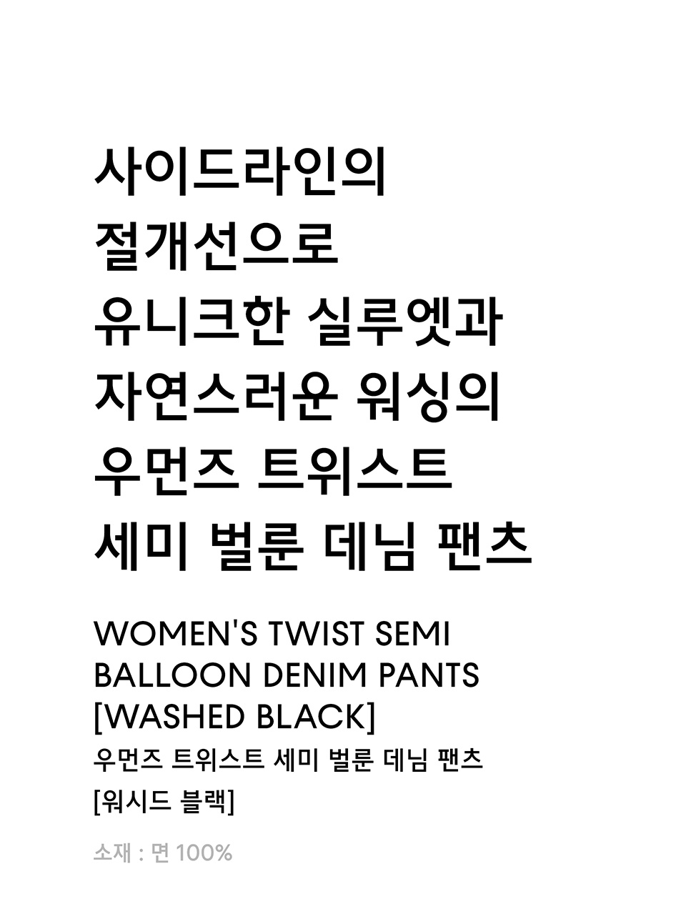 우먼즈 트위스트 세미 벌룬 데님 팬츠 [워시드 블랙]