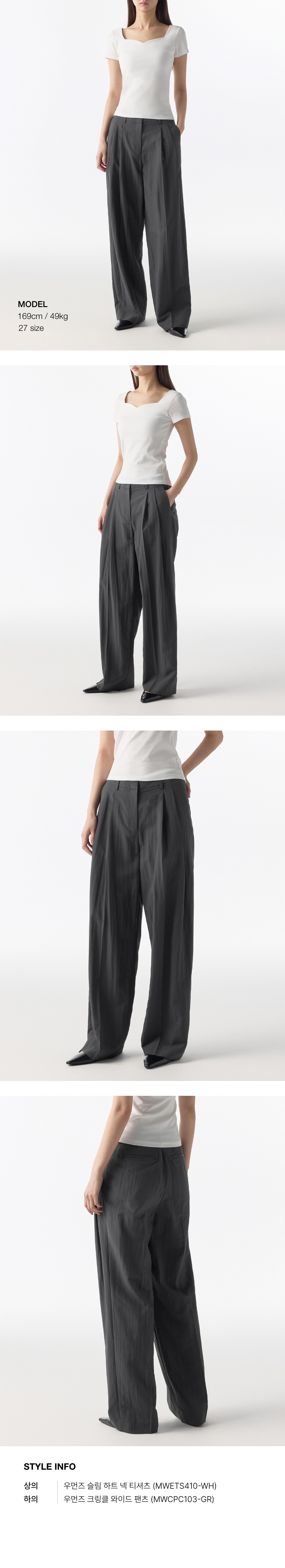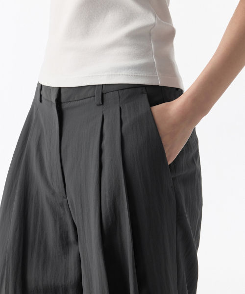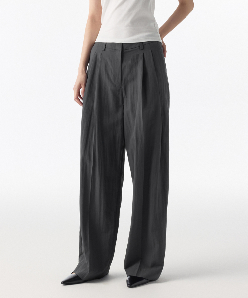 우먼즈 크링클 와이드 팬츠 [그레이]