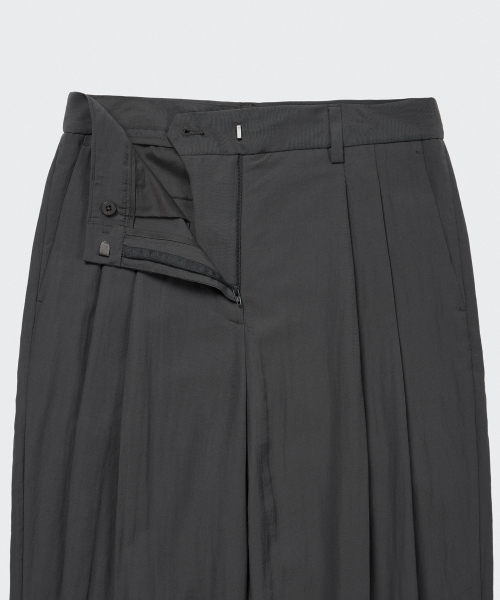 우먼즈 쿨 터치 로 웨이스트 딥 턱 와이드 슬랙스 [블랙]