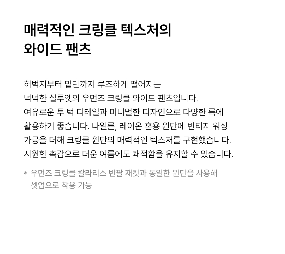 우먼즈 크링클 와이드 팬츠 [화이트]