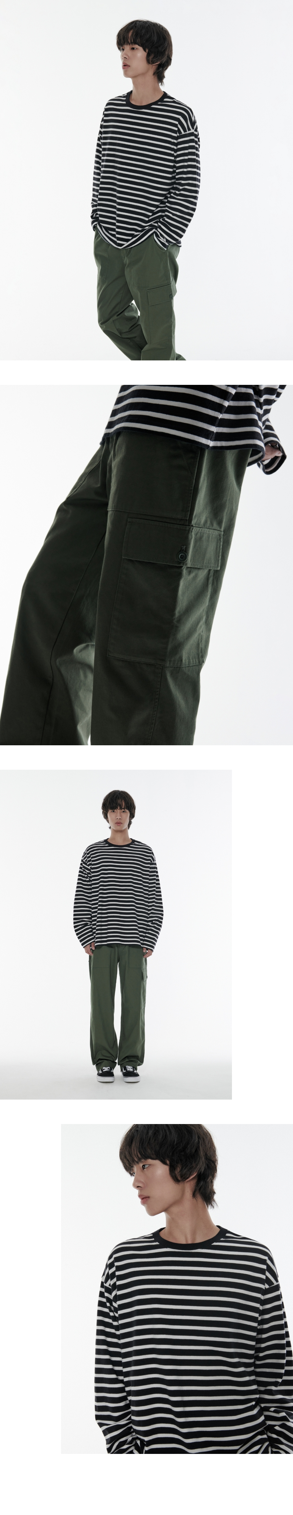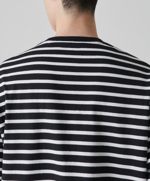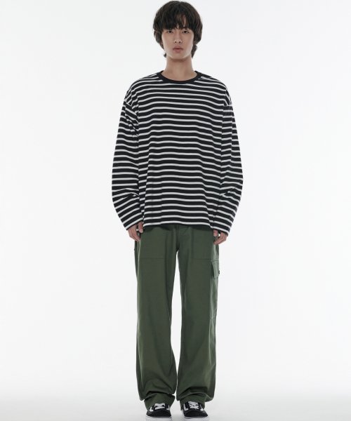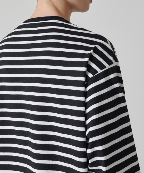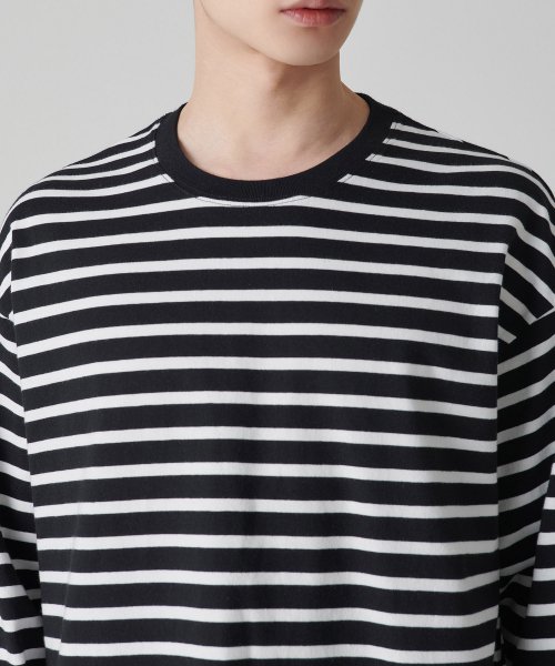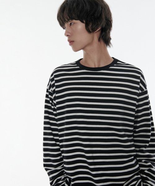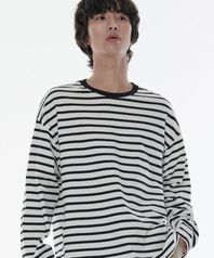 스트라이프 릴렉스드 크루 넥 긴소매 티셔츠 [블랙]