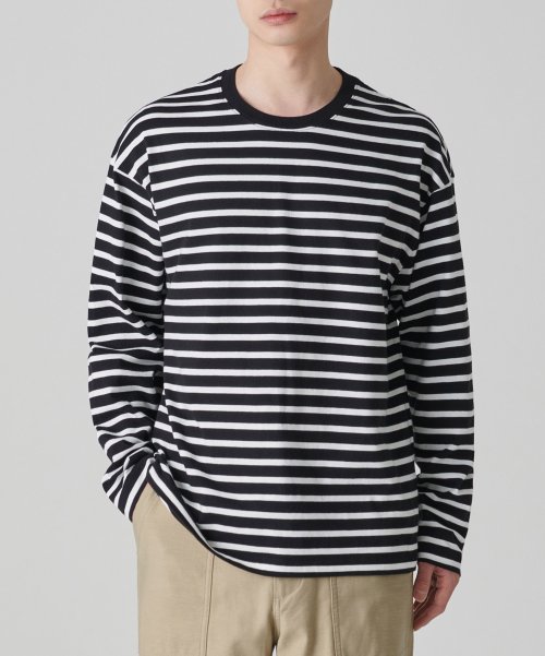 브레톤 스트라이프 릴렉스드 긴소매 티셔츠 [블랙/화이트]