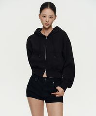 우먼즈 볼륨 크롭 후디드 스웨트 집업 [블랙]