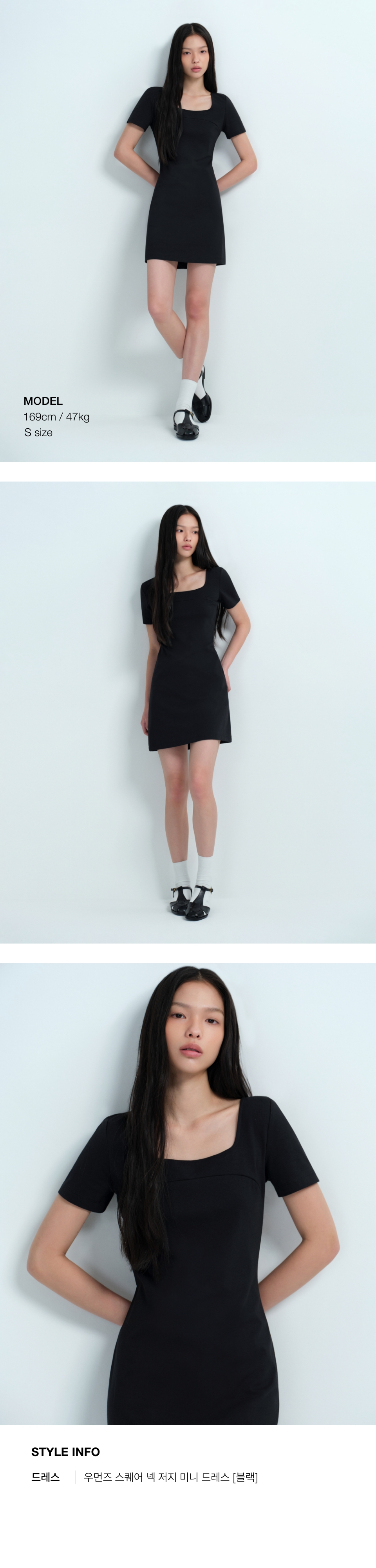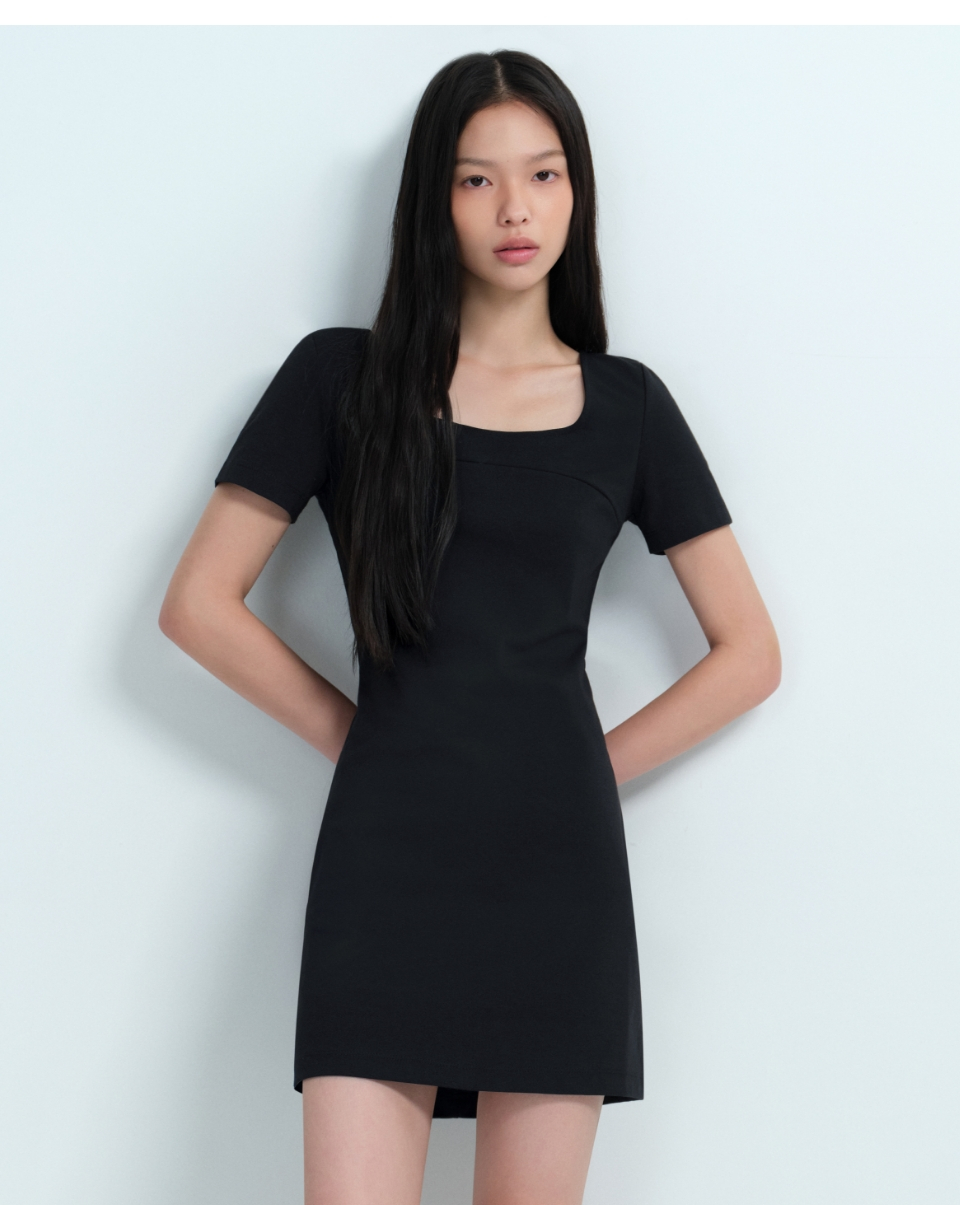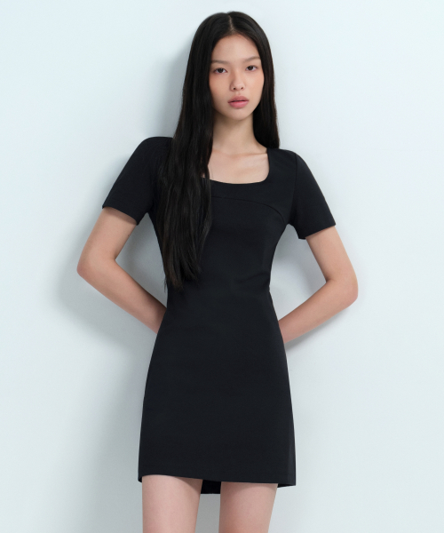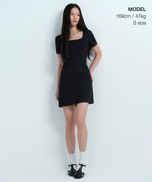 우먼즈 스퀘어 넥 저지 미니 드레스 [블랙]